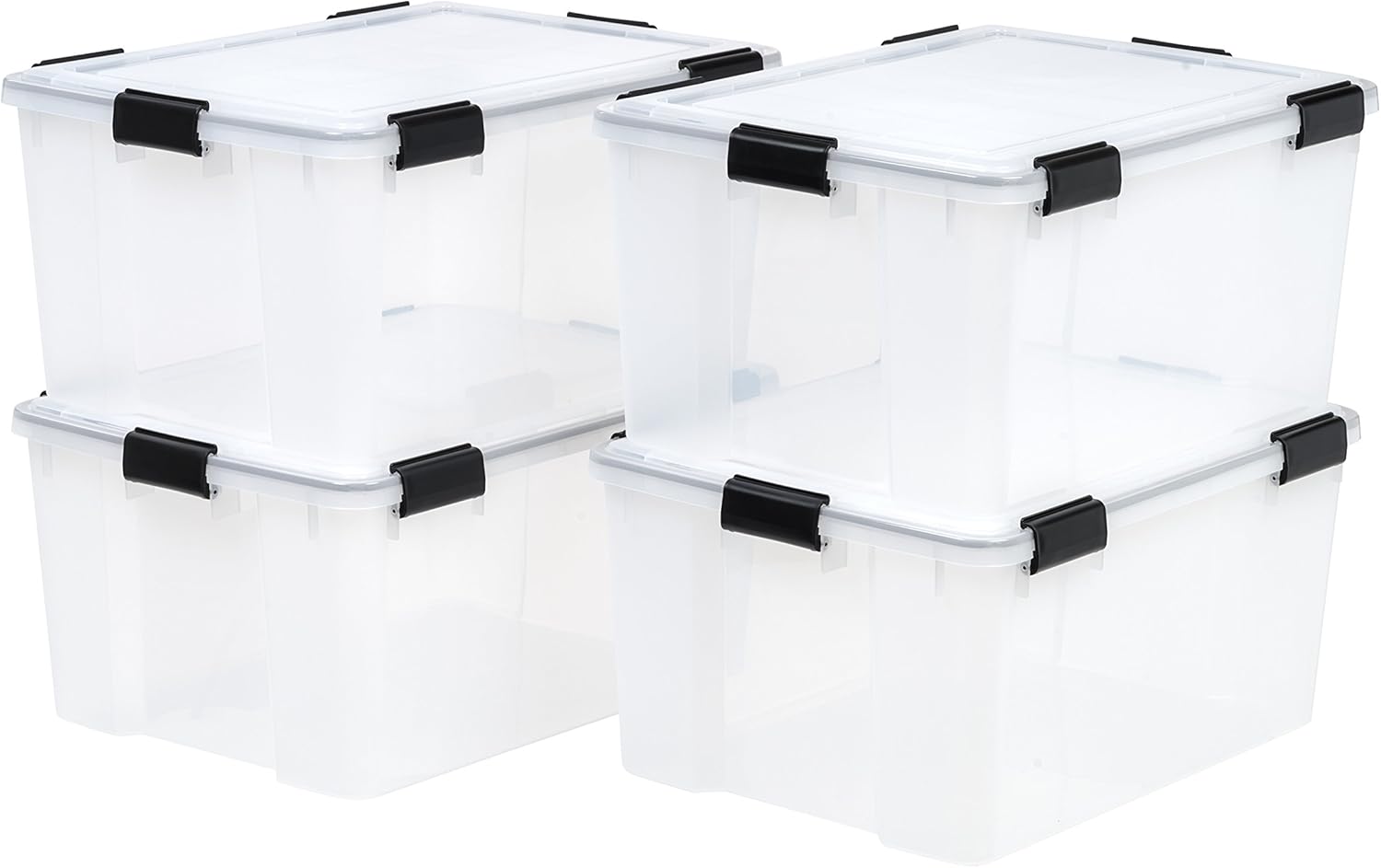 IRIS USA 110559 62.8 Quart Weathertight Plastic Storage Box, Clear (4 Pack)