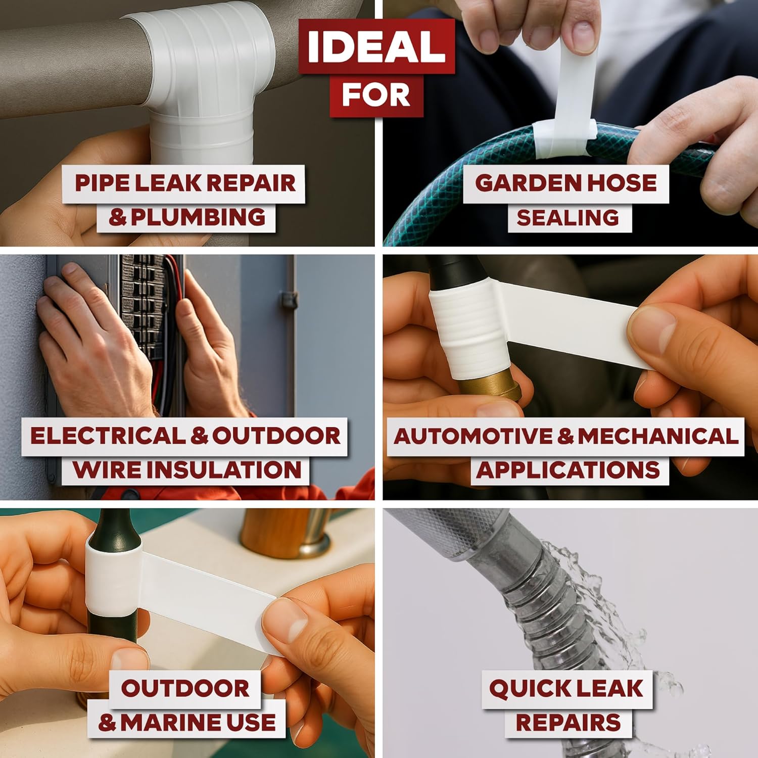 - Self-fusing Silicone Tape that does not melt up to 260°C (500°F) making it ideal for emergency repairs for automotive, plumbing, marine, hose, electrical, indoor and outdoor applications.