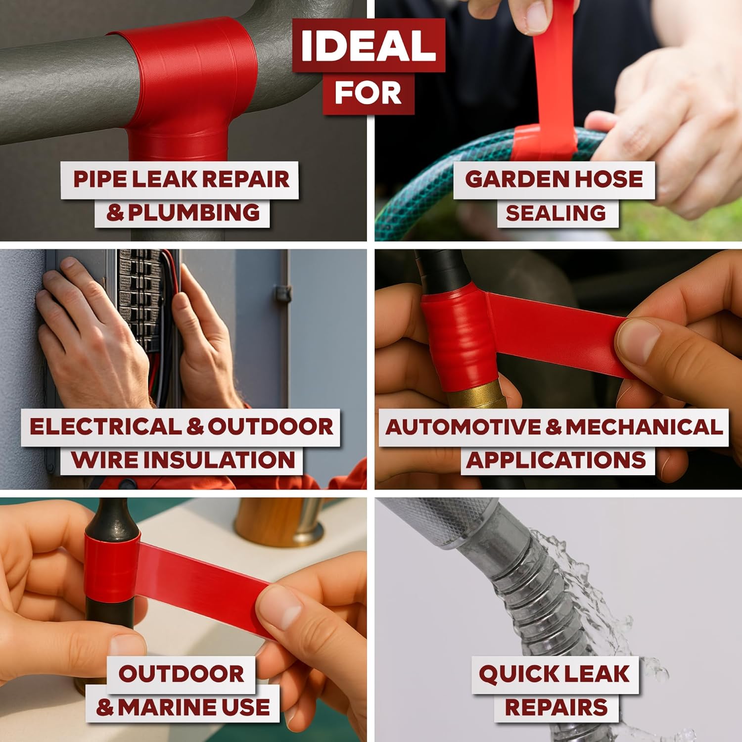 - Self-fusing Silicone Tape that does not melt up to 260°C (500°F) making it ideal for emergency repairs for automotive, plumbing, marine, hose, electrical, indoor and outdoor applications.