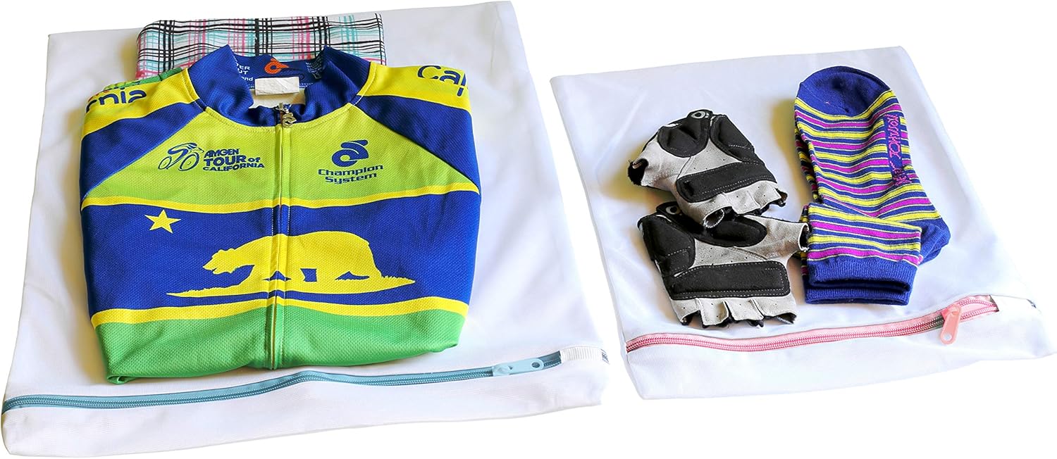 - Durable mesh wash bag and rust-free zippers. XL Black, L Blue, M Pink zippers.