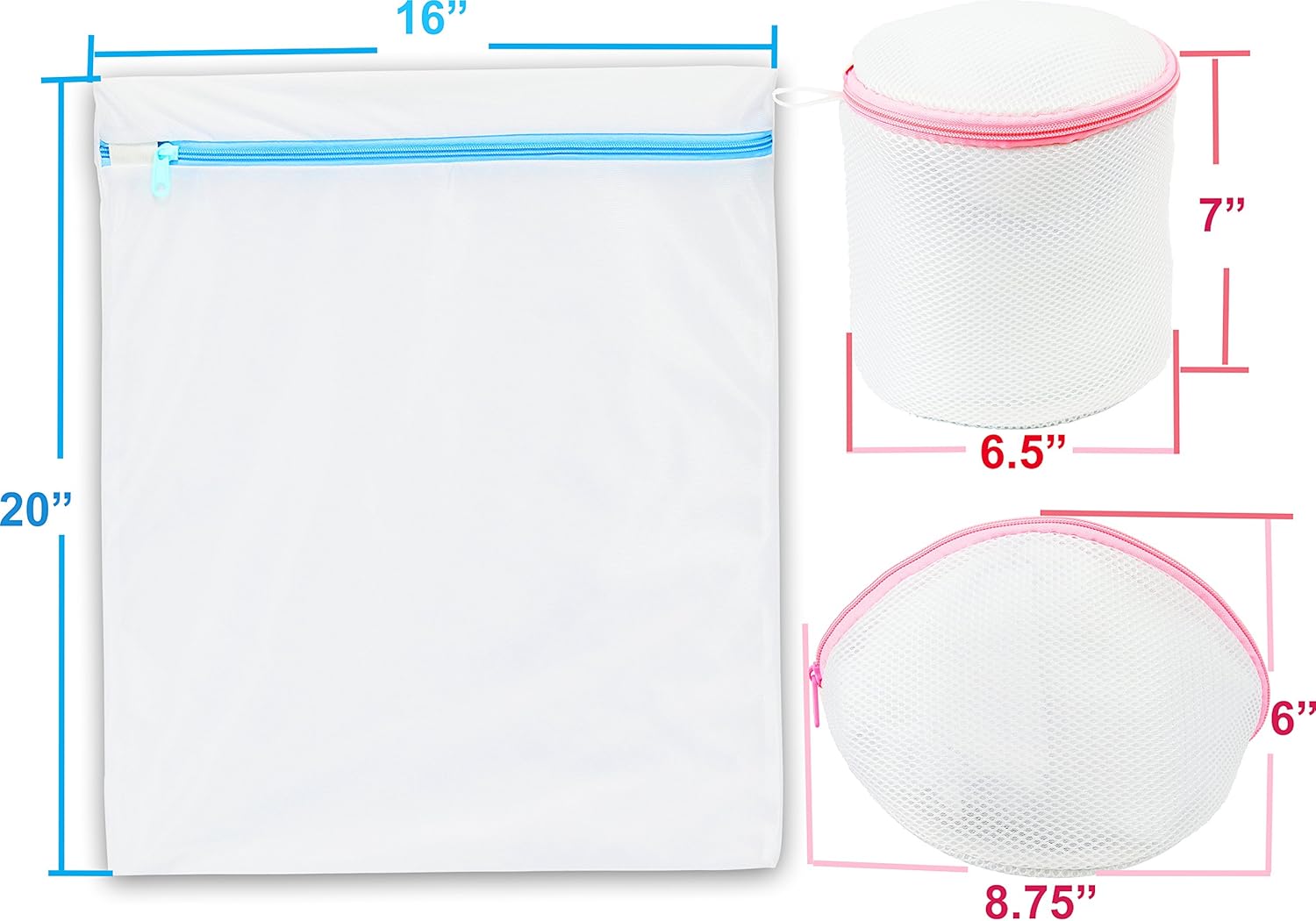 - 2 Large Bags (16" x 20") , 2 Underwear Bags (8.75" x 6") & 1 Underwear Bags (6.5" x 7") Fits A to D Cup Bras