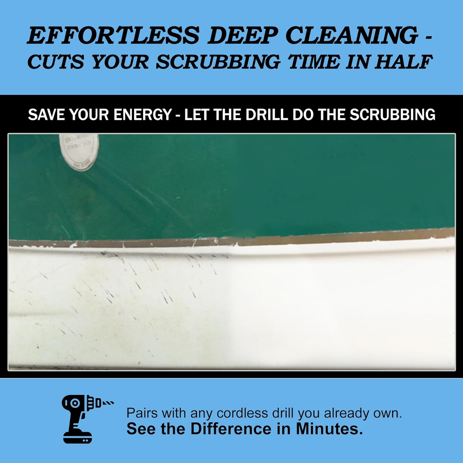- ALL-IN-ONE BOAT CLEANING KIT: This versatile drill-powered brush kit tackles cleaning tasks on kayaks, canoes, personal watercraft, and party barges. Say goodbye to algae, pond scum, oxidation, and oily residue. Clean faster and spend more time enjoying the water with our professional-grade boat cleaning brushes for drills and impact drivers.