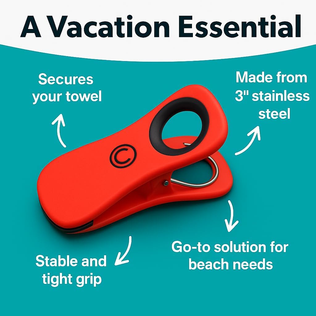 - LOCK YOUR TOWEL DOWN. STOP THE SLIP. Never chase a runaway towel again. CoreClips feature a powerful non-slip grip and a large 2.5-inch opening to secure your towel to any beach chair, lounge chair, or pool recliner. Unlike flimsy clips that pop off, our heavy-duty design ensures a windproof hold, keeping your spot secure all day.