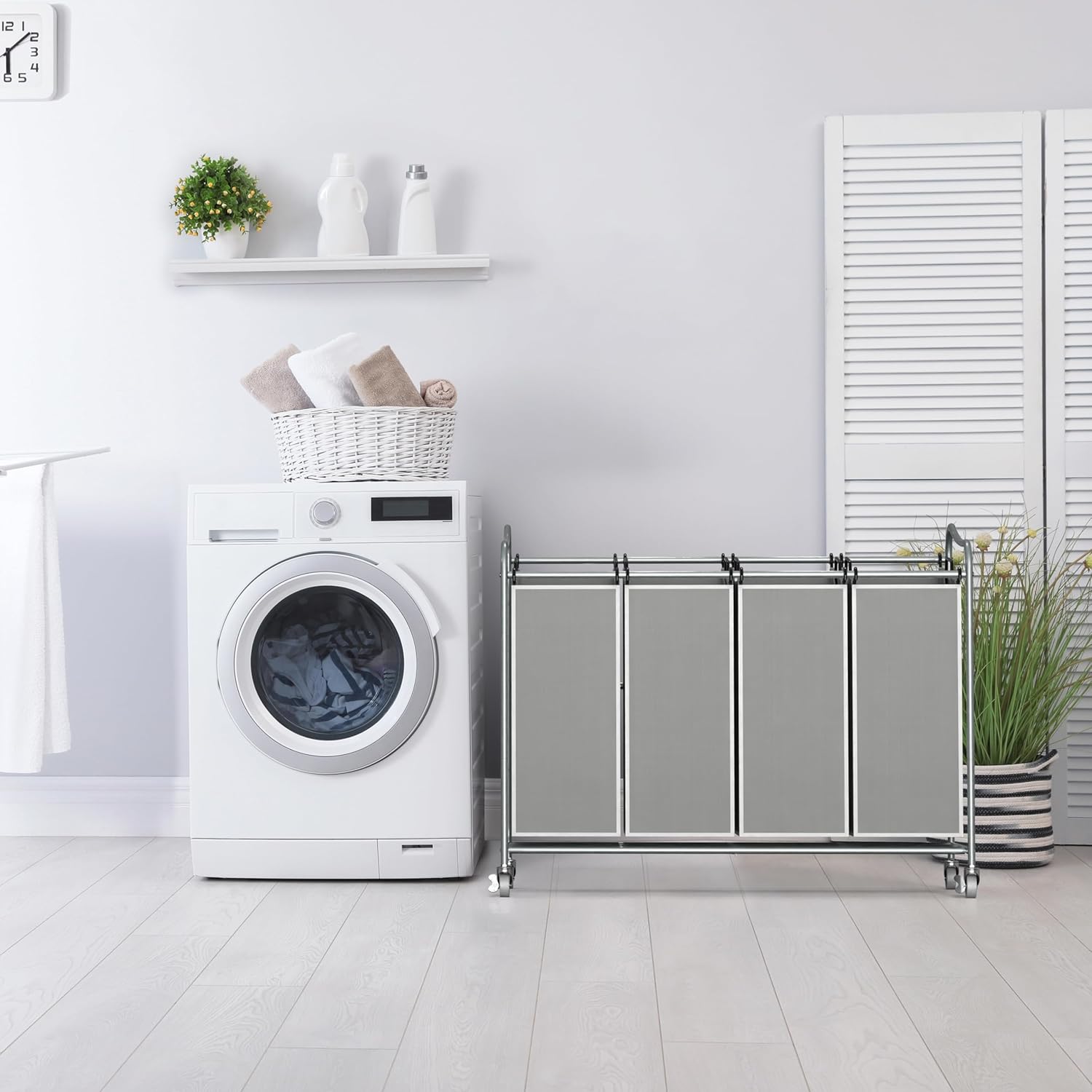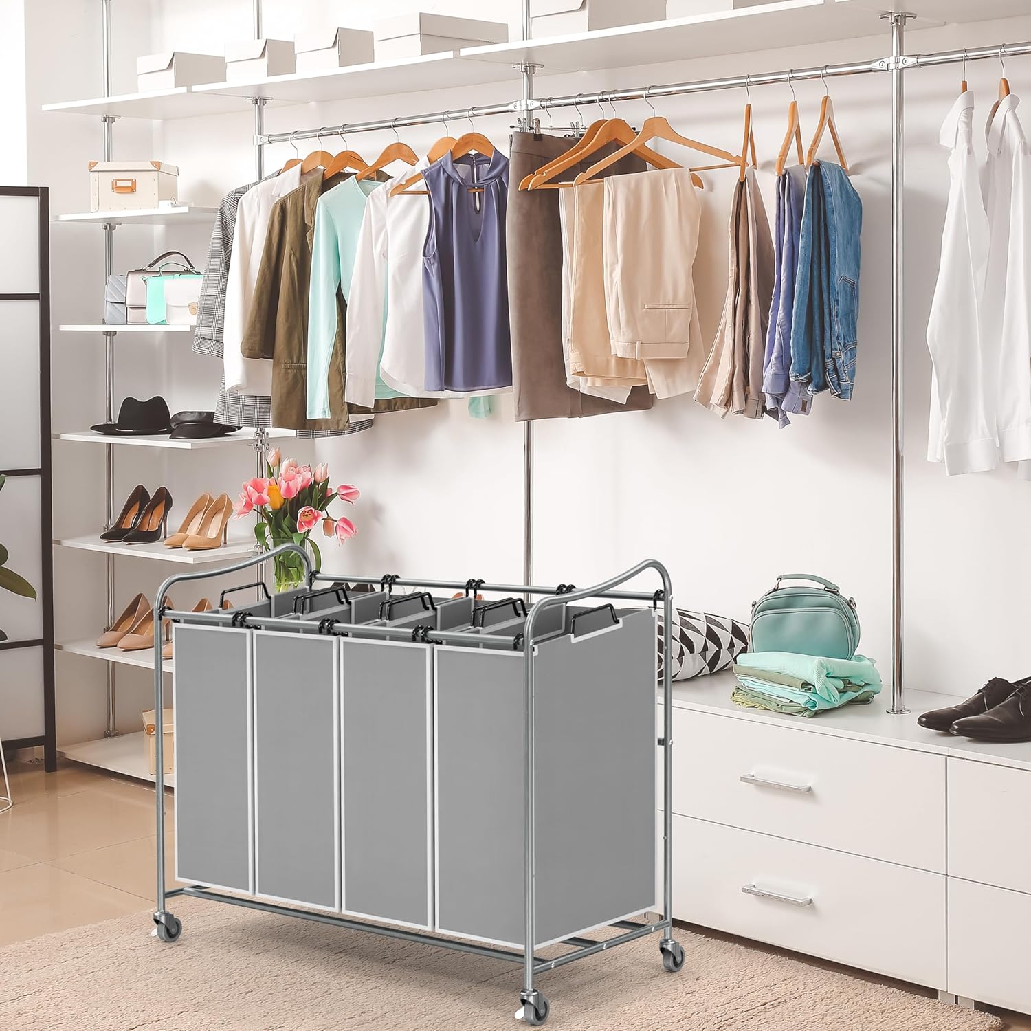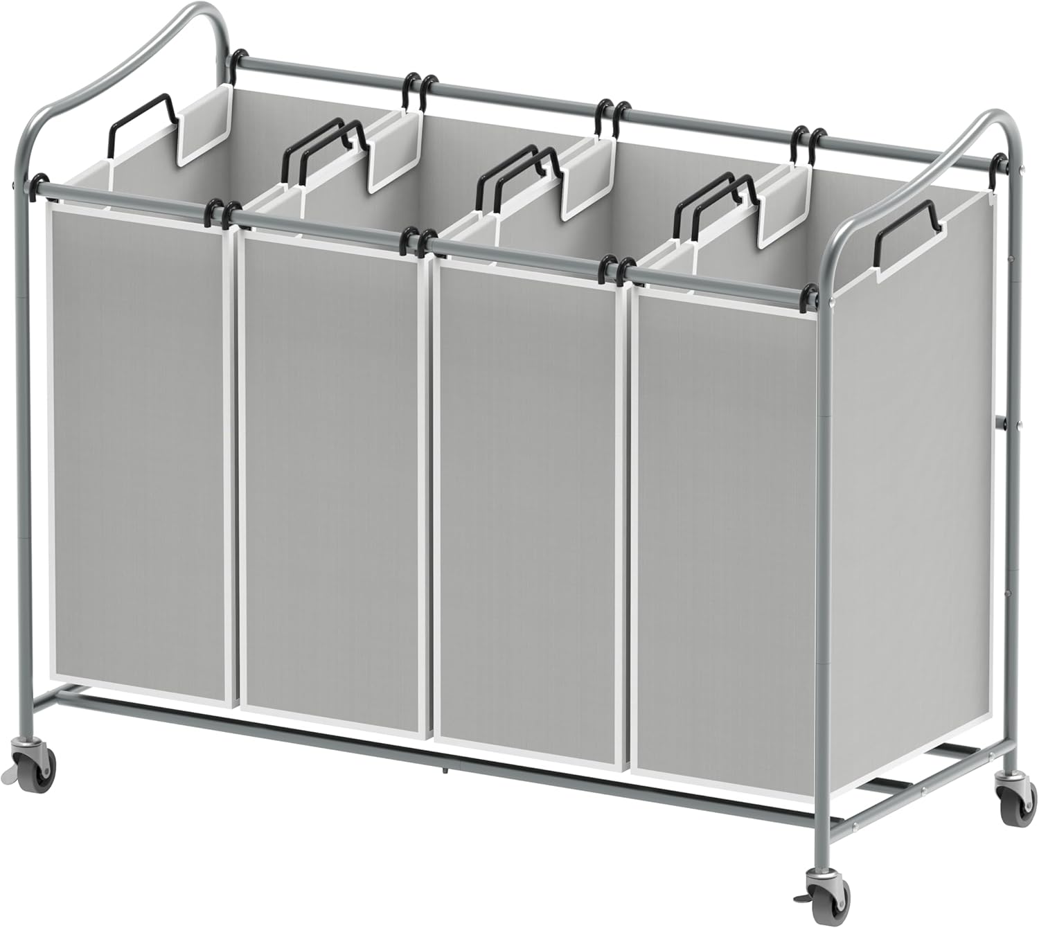 Simple Houseware 4-Bag Heavy Duty Laundry Sorter Rolling Cart, Silver