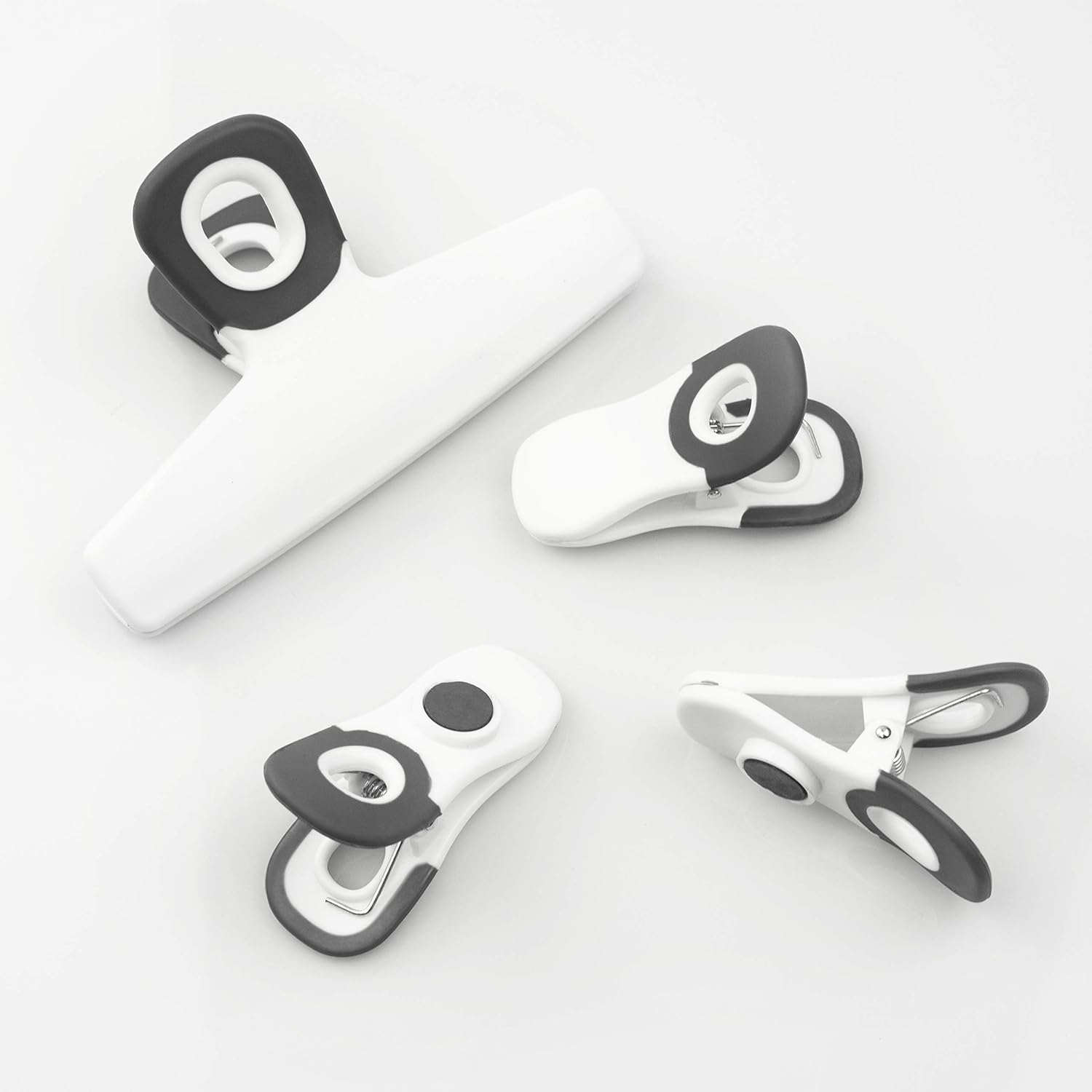 - Set includes 2 large 5" bag clip, the great size clip for extra large bags of chips and food and 6 clips with magnets on the back, great for sealing smaller bags of chips and food.