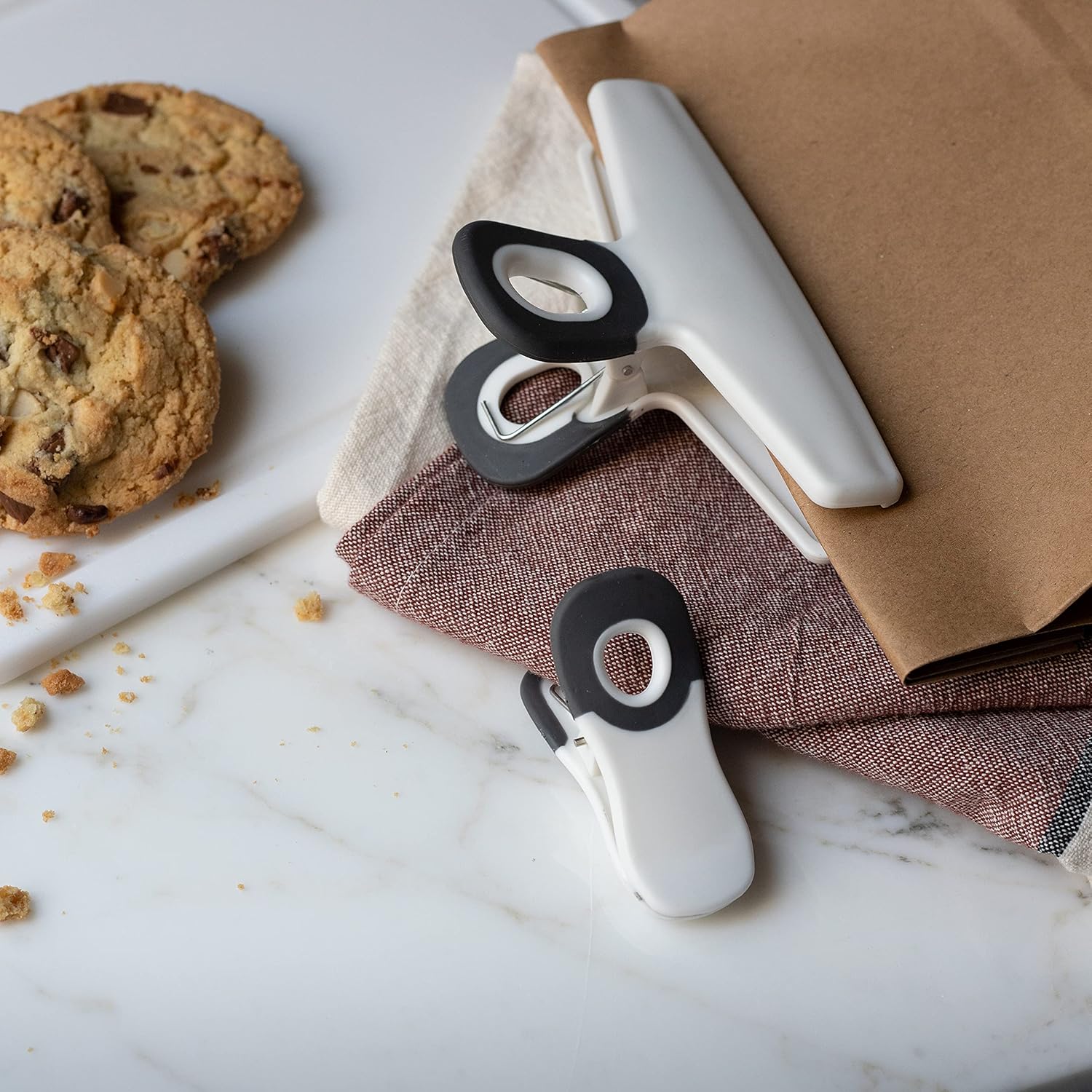 - Bag clips are one of those things you never have enough of, invest in a set of durable, long lasting, soft touch Cook with Color food bag clips and organize your home and office with a colorful set of spring clips.