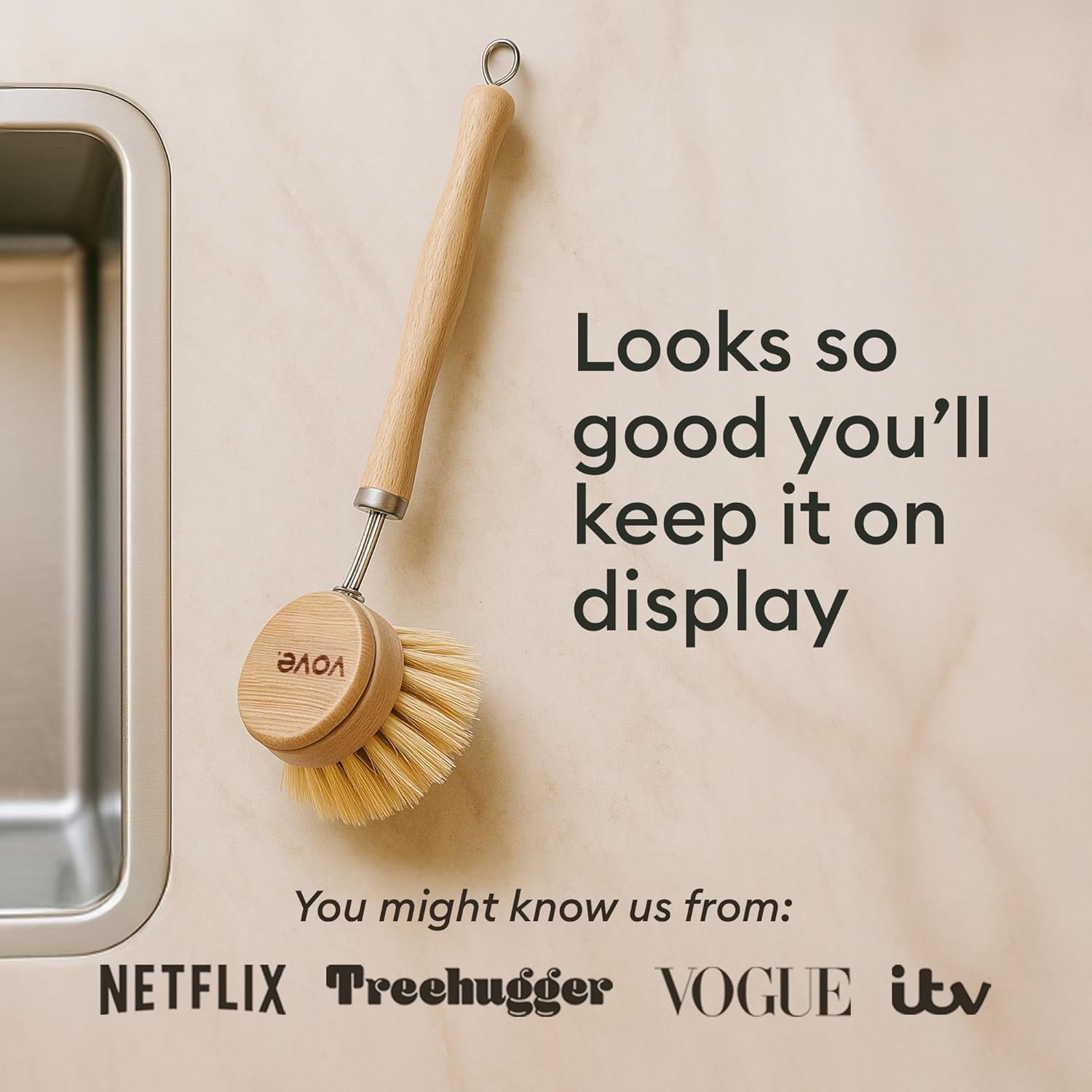 - POWERFUL CLEANING WITH NATURAL MATERIALS: Upgrade your dishwashing experience with our Vove Bamboo Dish Brush, featuring plant-based sisal fiber bristles and a long-lasting wooden handle. It's the ideal eco-friendly solution for scrubbing pots, pans, and dishes while keeping your kitchenware safe.