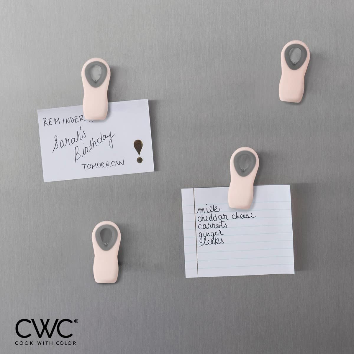- Fun and colorful clips with a useful magnet in the back - keep these handy helpers readily available on your fridge for an easy reach and access. Can be used to hold light objects.