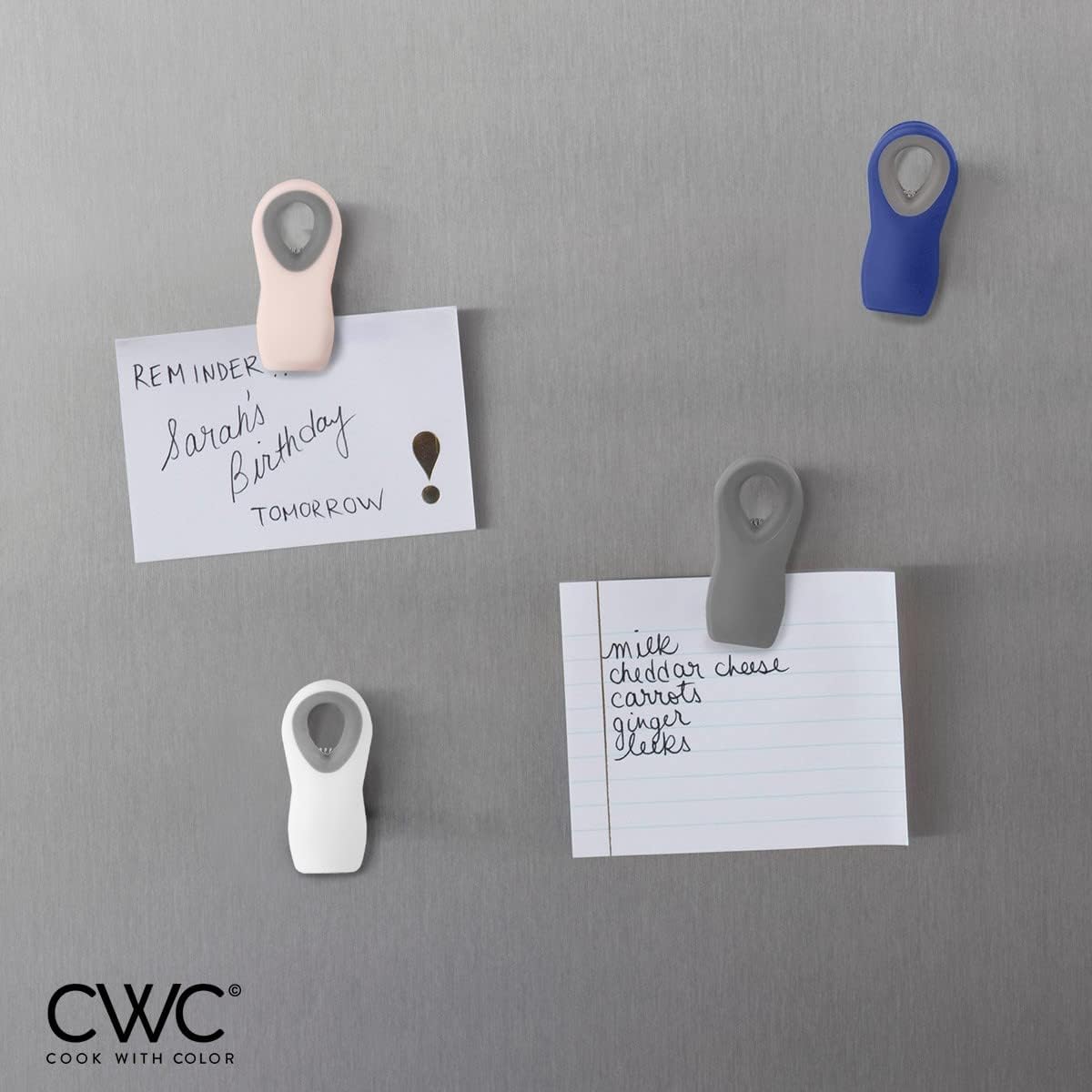 - Fun and colorful clips with a useful magnet in the back - keep these handy helpers readily available on your fridge for an easy reach and access. Can be used to hold light objects.