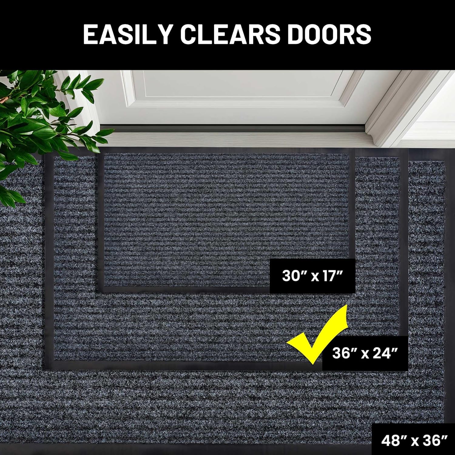 - Includes 2 Larger Indoor Outdoor Floor Mats: Enjoy two amazing heavy duty high quality ribbed polyester door mats (Larger 36" x 24") that will be perfect welcome for the everyday home. Amazing value 2-Pack.