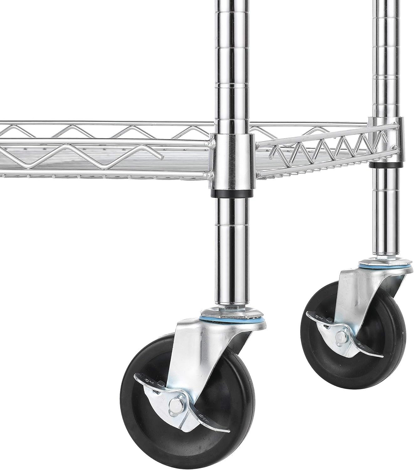 - STURDY CONSTRUCTION - This Rolling Utility Cart is constructed from industrial-strength steel, and equipped with 1 inch diameter poles. Can hold up to 500lbs on wheels.