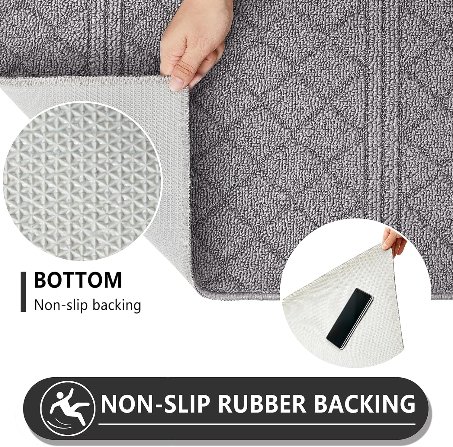 - 【LOW-PROFILE DESIGN & VERSATILE】Our inside door mats is only 0.4 ultra-thin inches, so doors can sweep over easily, ideal for low clearing doors or entryways. Low profile design and reinforced overlock edges ensures that doors won't get stuck or the door rug go curling. Ideal choice for your back door, kitchen, laundry, office, patio, living spaces and more. Boosting your home's overall beauty. Which is also ideal as a gift for your friends, parents, kids and family.