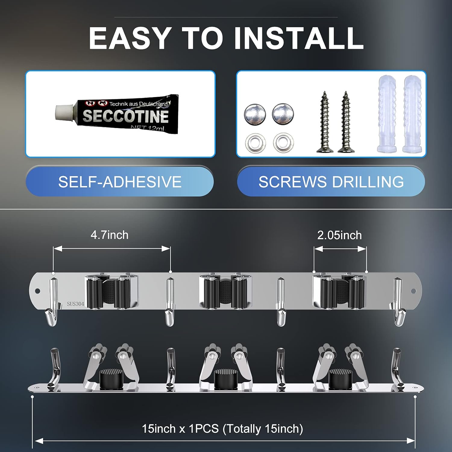 - 🏡【EASY TO INSTALL & USE】There are two ways to install the broom hanger wall mount, screws drilling and self-adhesive, which is suitable for different installation surfaces. Please follow the clear instructions step by step, even the clumsiest of us can install easily in just minutes!