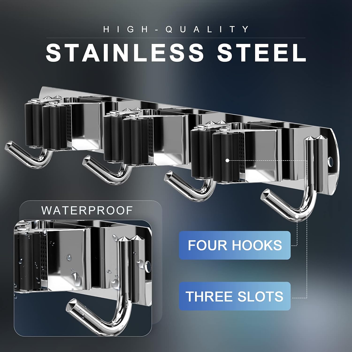 - 🏡【STURDY BROOM HOLDER】Each broom holder wall mount has 3 racks 4 hooks. Made of sturdy 304 stainless steel, the broom holder is corrosion-resistant, rustproof and waterproof. Compared with the plastic broom rack, it is more stronger and has a longer service life.