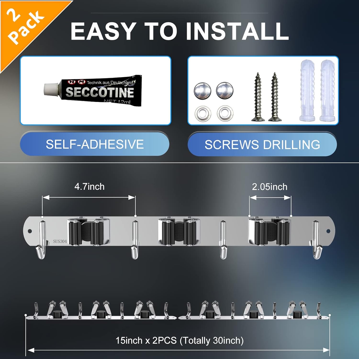 - 🏡【EASY TO INSTALL & USE】There are two ways to install the broom hanger wall mount, screws drilling and self-adhesive, which is suitable for different installation surfaces. Please follow the clear instructions step by step, even the clumsiest of us can install easily in just minutes!