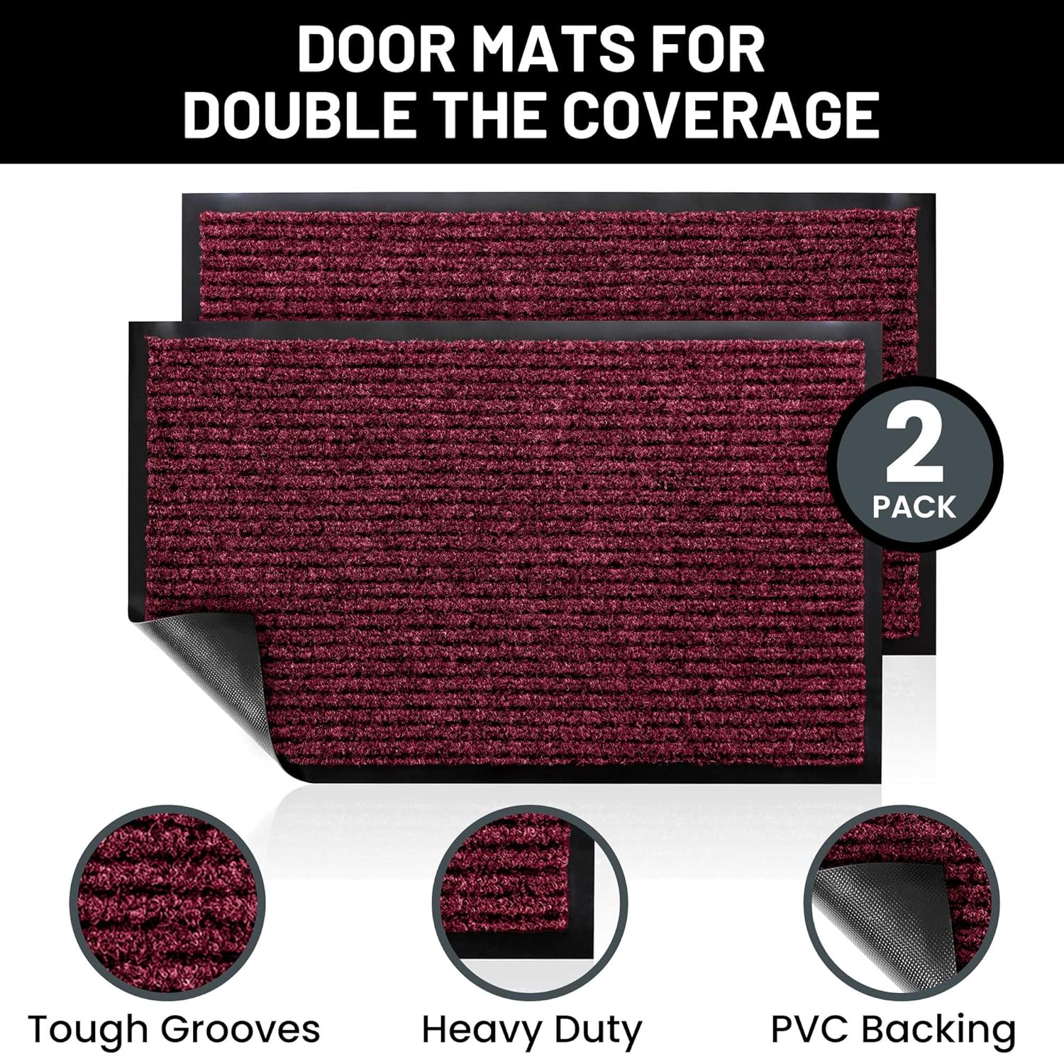 - Includes 2 Indoor Outdoor Floor Mats: Enjoy two amazing heavy duty high quality ribbed polyester door mats (30" x 17") that will be perfect welcome for the everyday home. Amazing value 2-Pack Red Color.