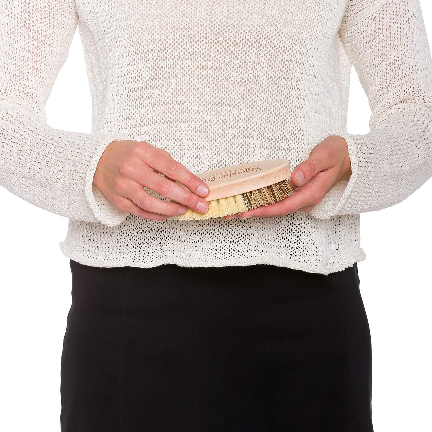 - Efficient Vegetable Cleaning: This wooden vegetable brush is ideal for gently and thoroughly cleaning almost all kinds of vegetables and root crops without bruising, scraping, or damaging foods; efficiently scrubs dirt from potatoes, carrots, radishes, cucumbers, zucchinis, tomatoes, and more; Brush made in Germany