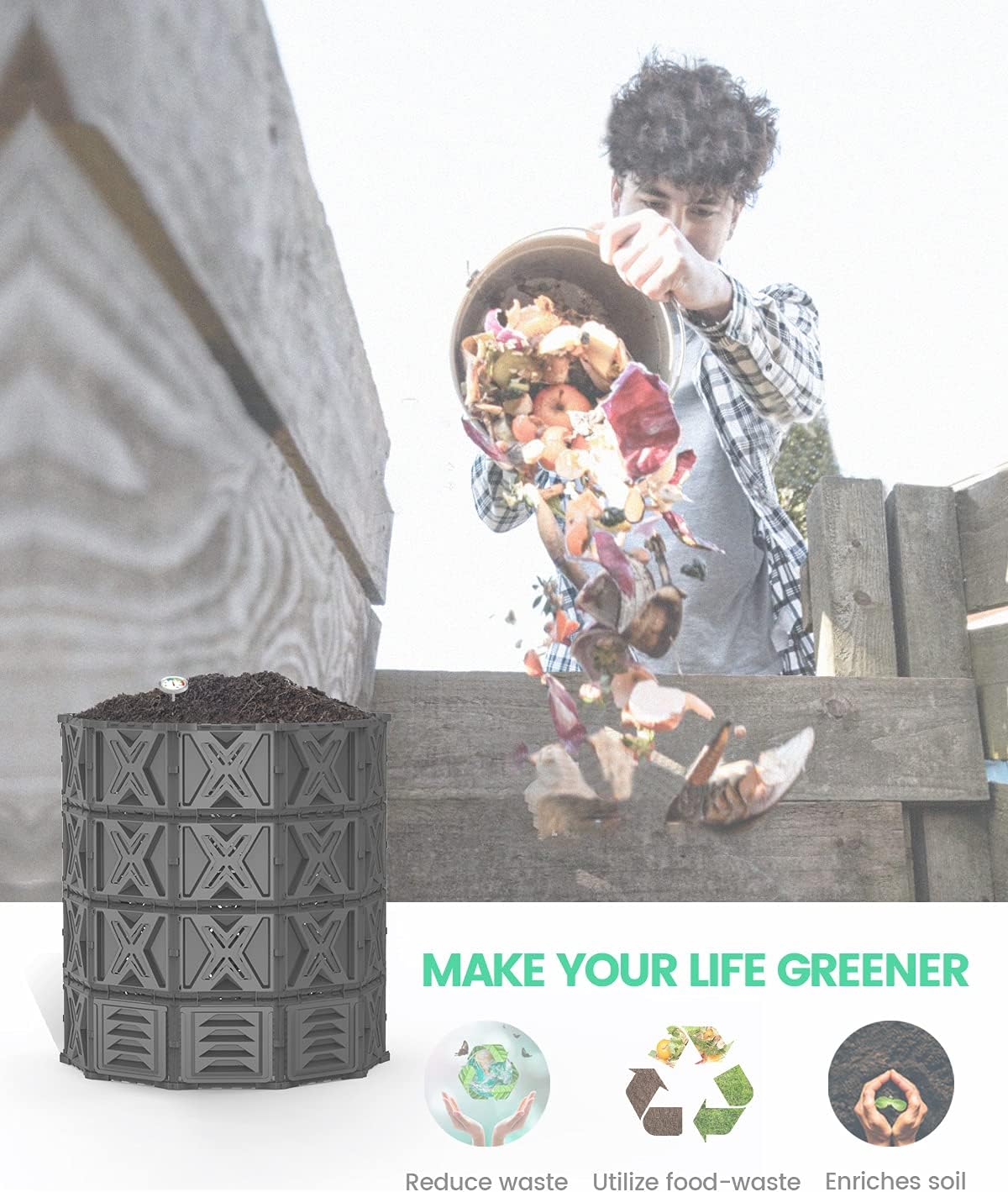 - ENVIRONMENTALLY FRIENDLY -This composter is manufactured with 100% recycled uv-resistant PP for long lasting all weather durability, it is BPA free.
