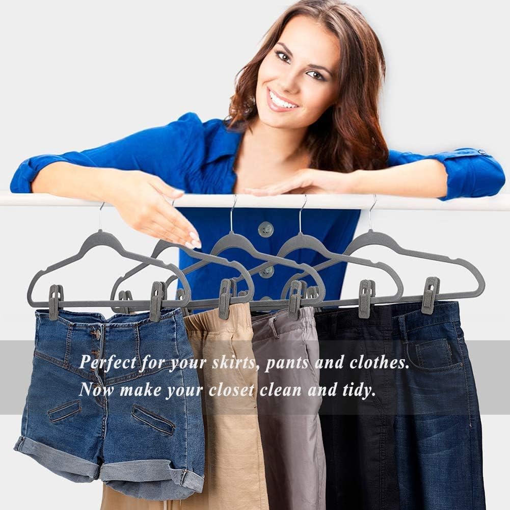 - ✅ Premium Material and Durable - Made of Soft Premium Velvet and Sturdy ABS, these grey velvet hanger clips are very strong hold, have good non-slip function, will not deform and rust.