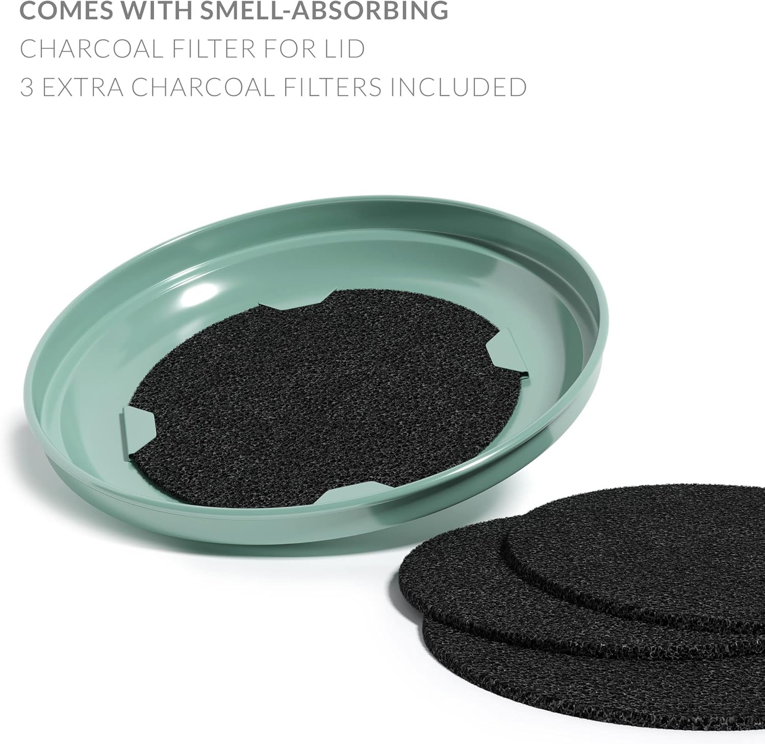 - Efficient Odor Reduction - Our 1.2-gallon compost bin kitchen counter is a countertop composter that comes with three extra smell-absorbing filters for convenient food waste bin for kitchen use.