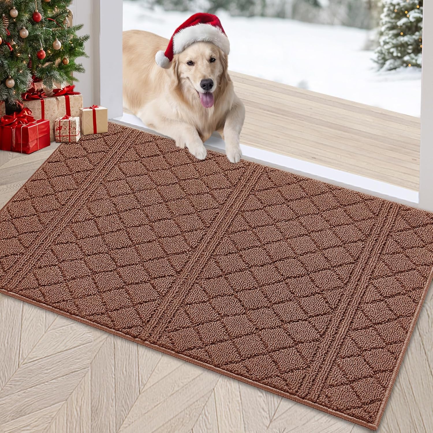 REFETONE Indoor Doormat, Front Back Door Mat 32"x48" Absorbent Rubber Backing Non Slip Door Mats, Low-Profile Resist Dirt Rugs, Machine Washable Door Rug Inside Floor Mat for Entryway, Chocolate