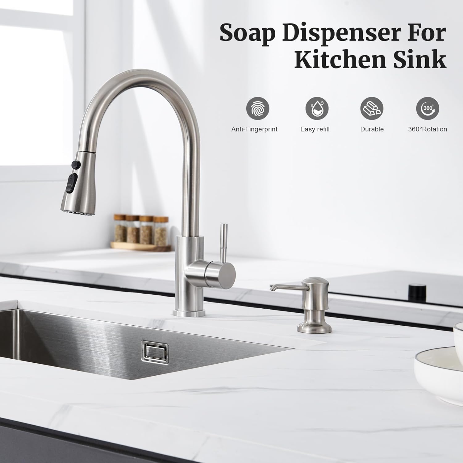 Sink Soap Dispenser for Kitchen Sink Brushed Nickel Upgrade with 40" Silicone Extension Tube Kit, Connect to Your Soap Bottle Directly