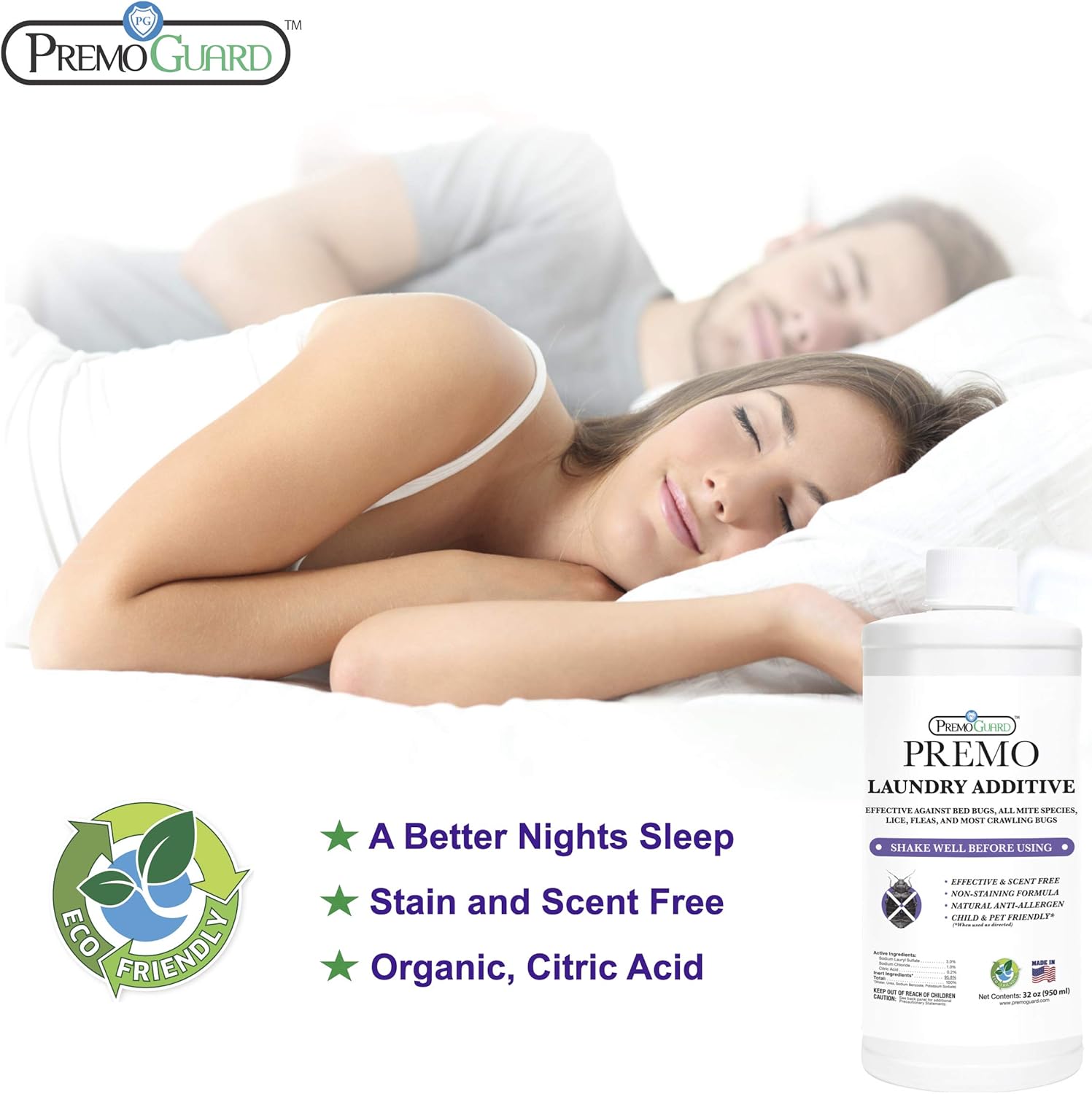 Bed Bug & Mite Laundry Detergent Additive by Premo Guard – 32 oz – Child & Pet Friendly – Stain & Odor Free – Best Natural Non-Toxin Treatment