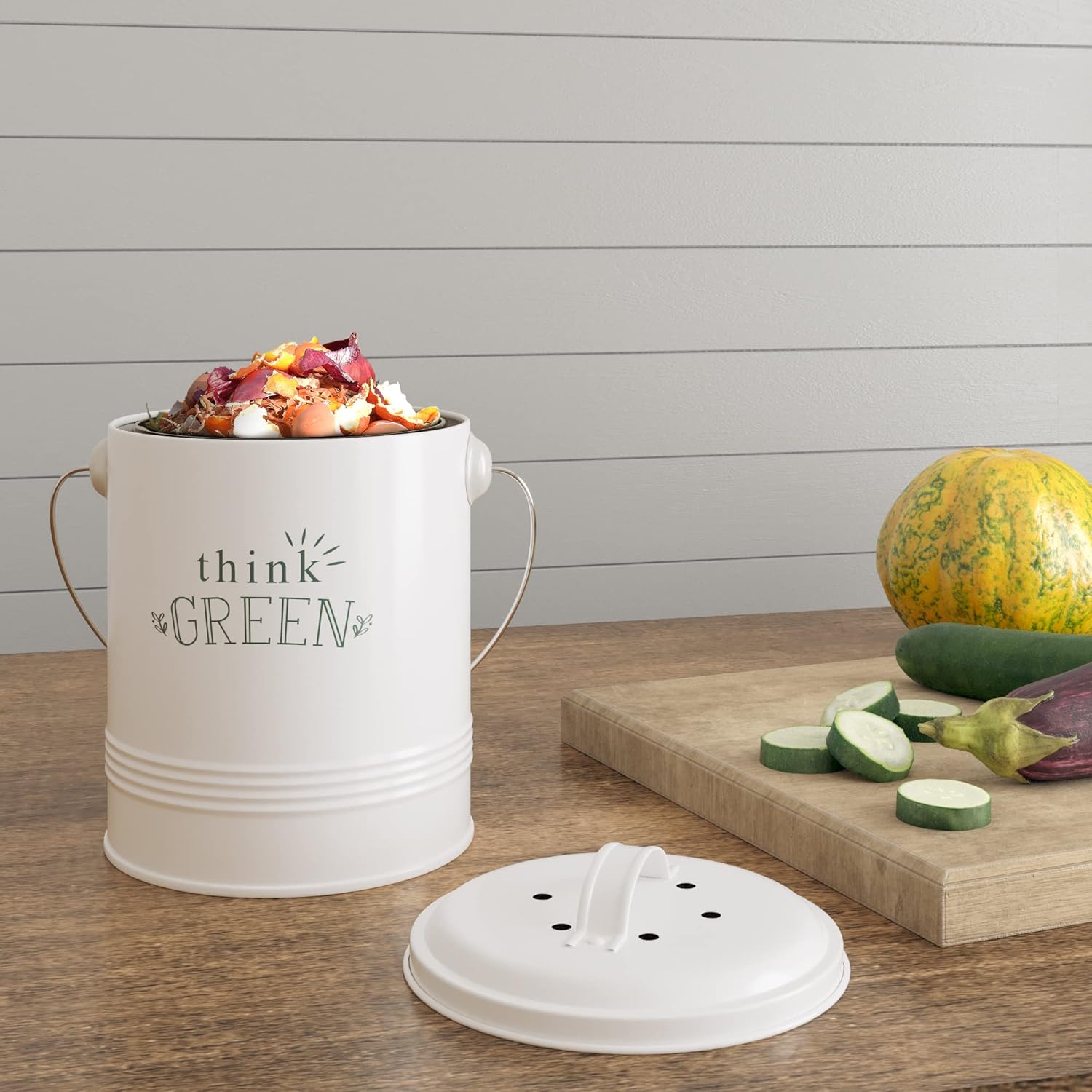 Barnyard Designs Compost Bin for Kitchen Counter - 1.2 Gallon Countertop Composter with Extra Smell-Absorbing Filters and Inner Bucket for Easy Cleaning - Food Waste Bin for Kitchen with Lid (White)