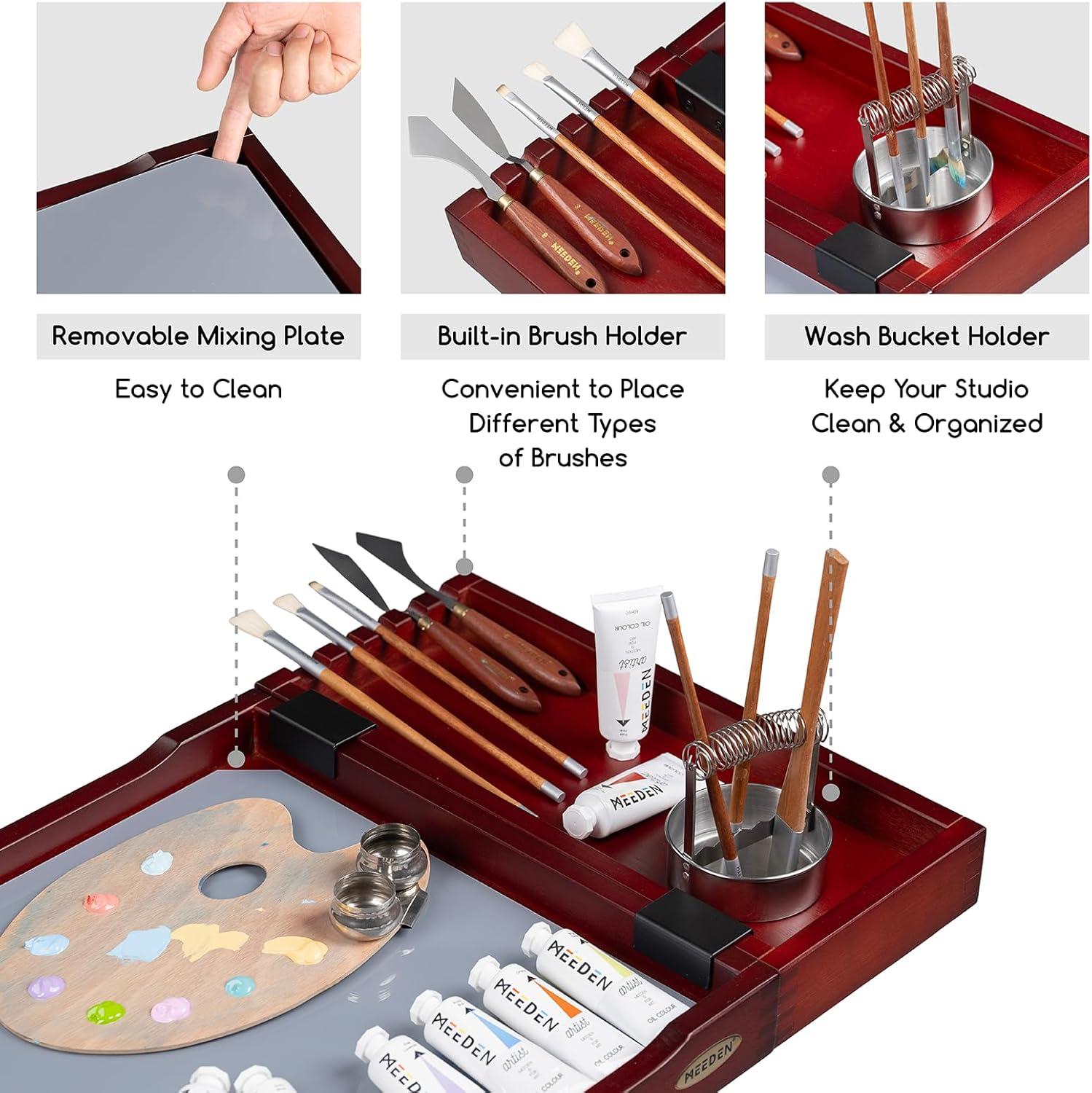- Multifunctional Design: Come with a brush holder, store different kinds of brushes tidily. Unique round groove for inlaying brush washer, optimize creation space perfectly. Many functions in one, such as a practical and utility cart, deserve to have!