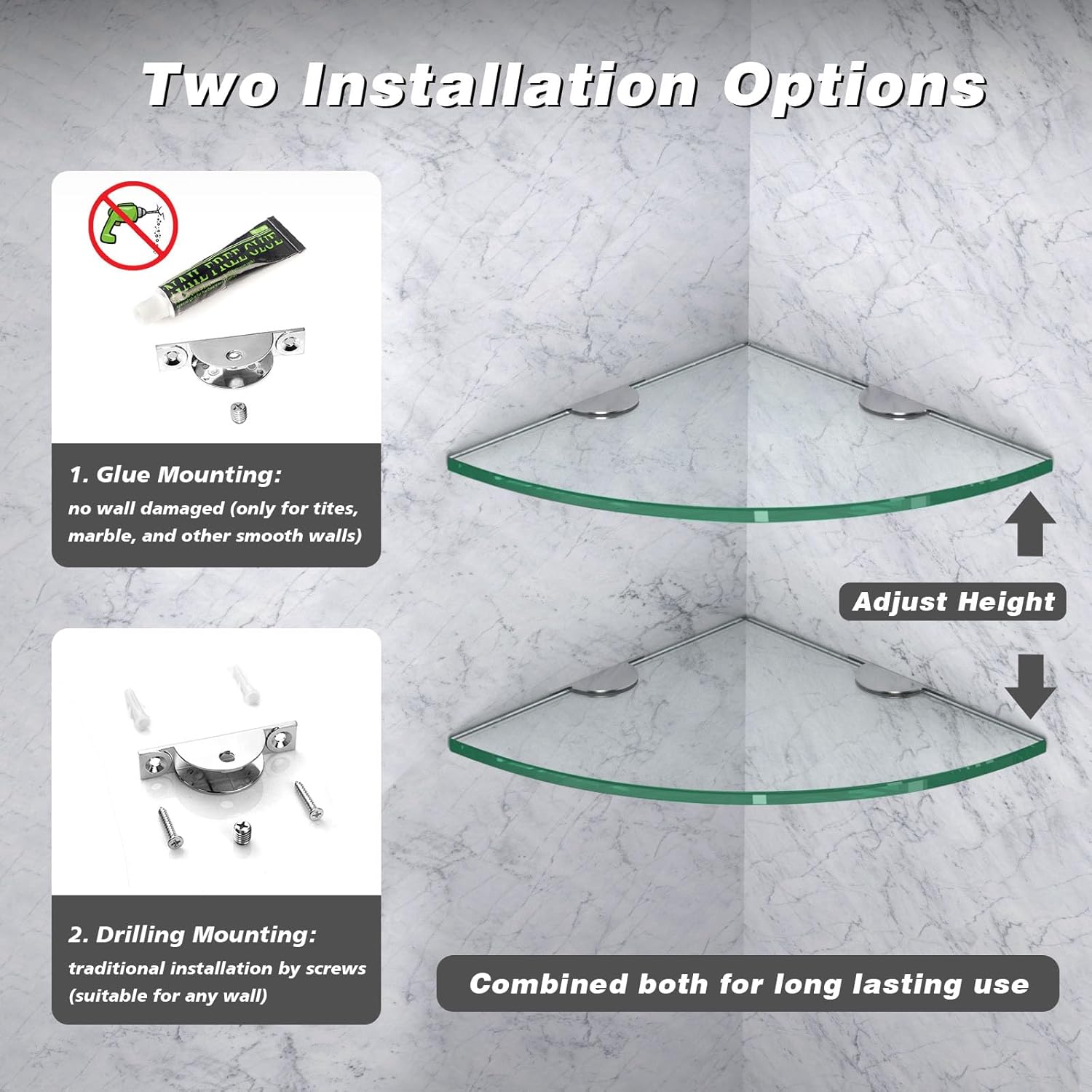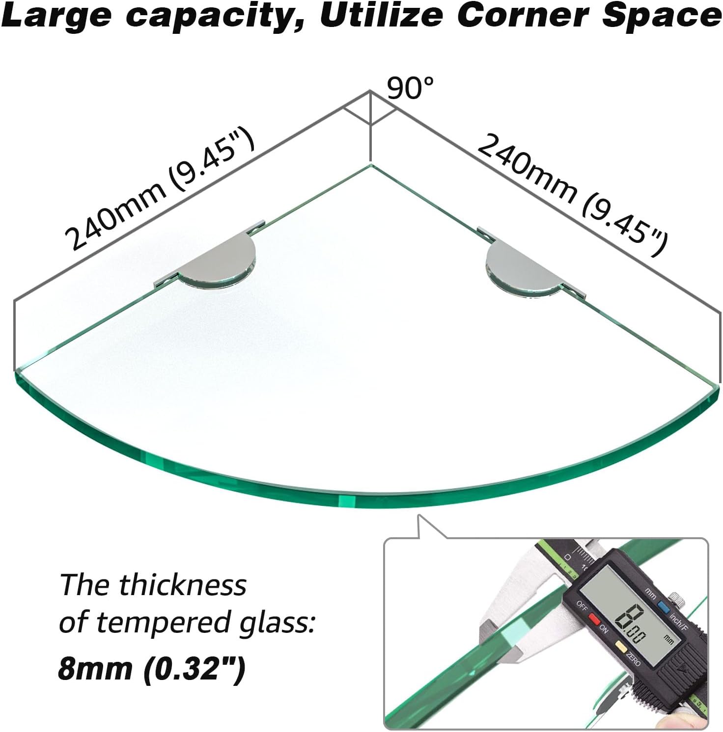 Corner Glass Shower Caddy 4 Pack 8MM-Thick Tempered Glass Shelf No Drilling Wall Mount Corner Mounted Shelves Space Saver Adhesive Bathroom Home Shelf Shampoo Holder Organizer Strong Adhesion