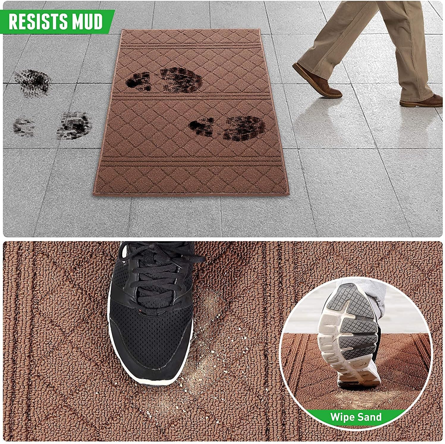 - 【TRAP DIRT & ABSORB MOISTURE】Eliminates dirty and wet foot prints when you entering the house. REFETONE door mat using double layer technology which helps to scrap off dirt, water, dust, grit, mud, sand, grass, slush, snow and absorb moisture from shoe. Say goodbye to messy floors and keep your indoor environment clean and tidy. Indoor doormat perfect for high-traffic areas and widely used for all seasons, especially for the rainy, snowy, or muddy weather. Enjoy your home every time!