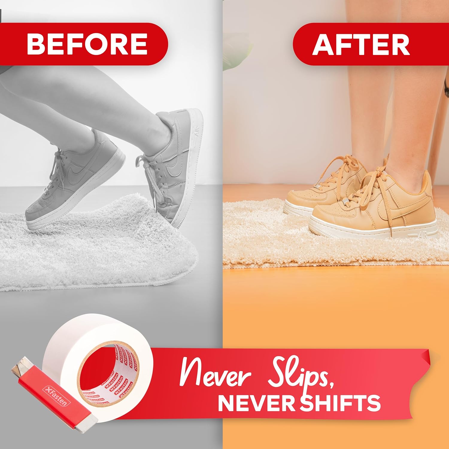 - ENHANCED SAFETY FOR YOUR FAMILY – Prevent slips, trips, and accidents at home. By keeping rug tape grippers for area rugs on hardwood floors securely in place, our tape helps PROTECT KIDS, SENIORS, PETS and GUESTS from falls in high-traffic areas like entryways, staircases, and hallways.