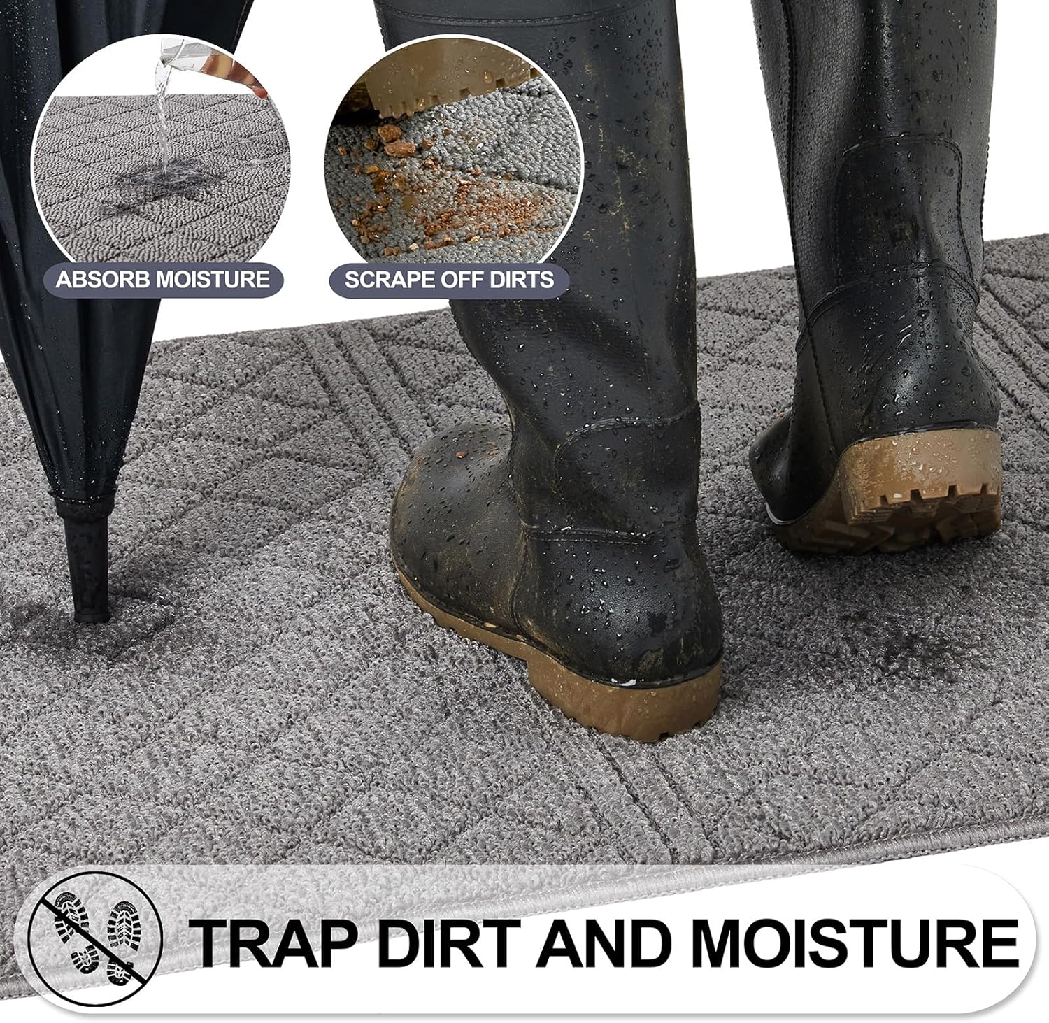 - 【TRAP DIRT & ABSORB MOISTURE】Eliminates dirty and wet foot prints when you entering the house. REFETONE door mat using double layer technology which helps to scrap off dirt, water, dust, grit, mud, sand, grass, slush, snow and absorb moisture from shoe. Say goodbye to messy floors and keep your indoor environment clean and tidy. Indoor doormat perfect for high-traffic areas and widely used for all seasons, especially for the rainy, snowy, or muddy weather. Enjoy your home every time!