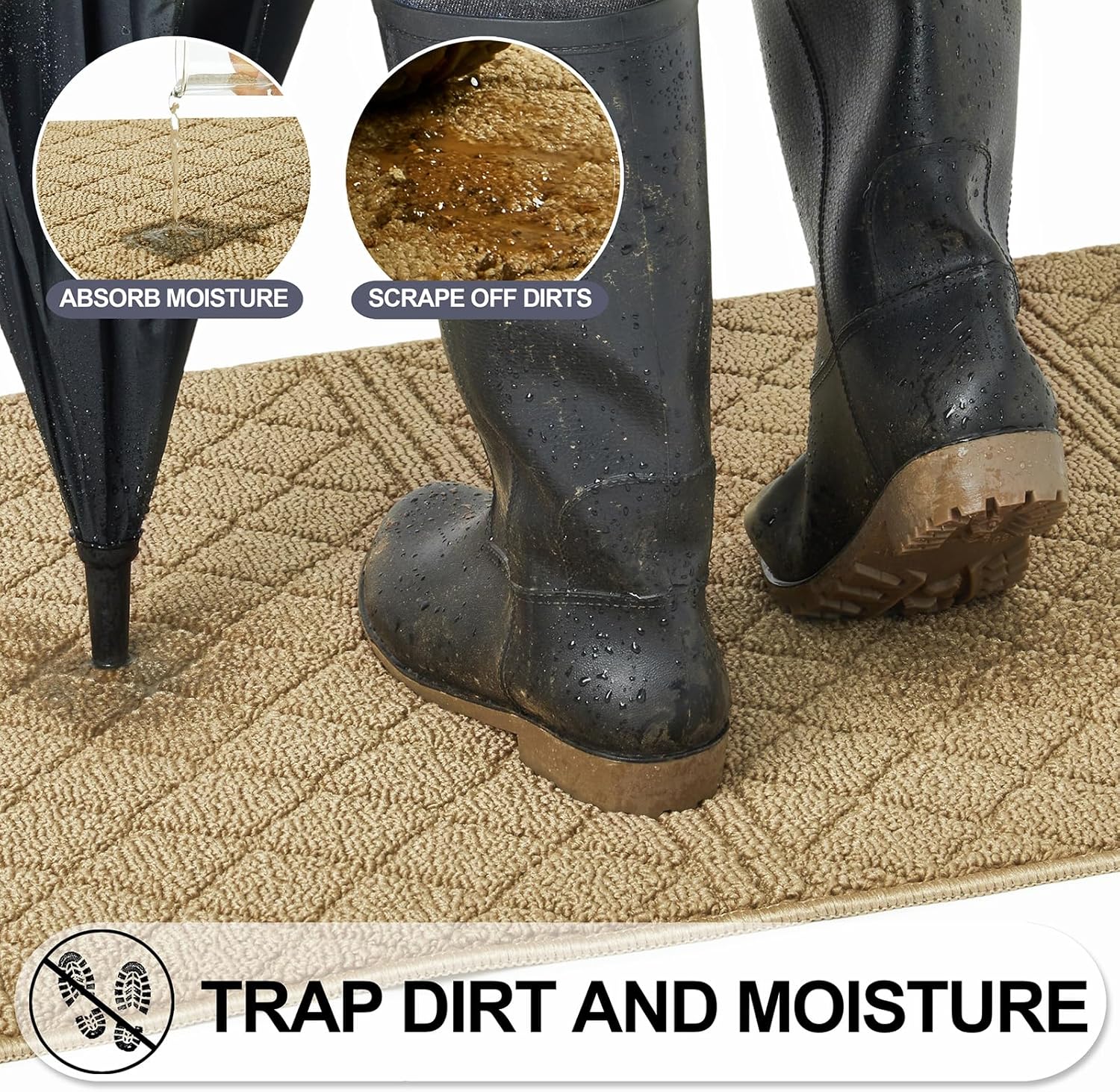 - 【TRAP DIRT & ABSORB MOISTURE】Eliminates dirty and wet foot prints when you entering the house. REFETONE door mat using double layer technology which helps to scrap off dirt, water, dust, grit, mud, sand, grass, slush, snow and absorb moisture from shoe. Say goodbye to messy floors and keep your indoor environment clean and tidy. Indoor doormat perfect for high-traffic areas and widely used for all seasons, especially for the rainy, snowy, or muddy weather. Enjoy your home every time!
