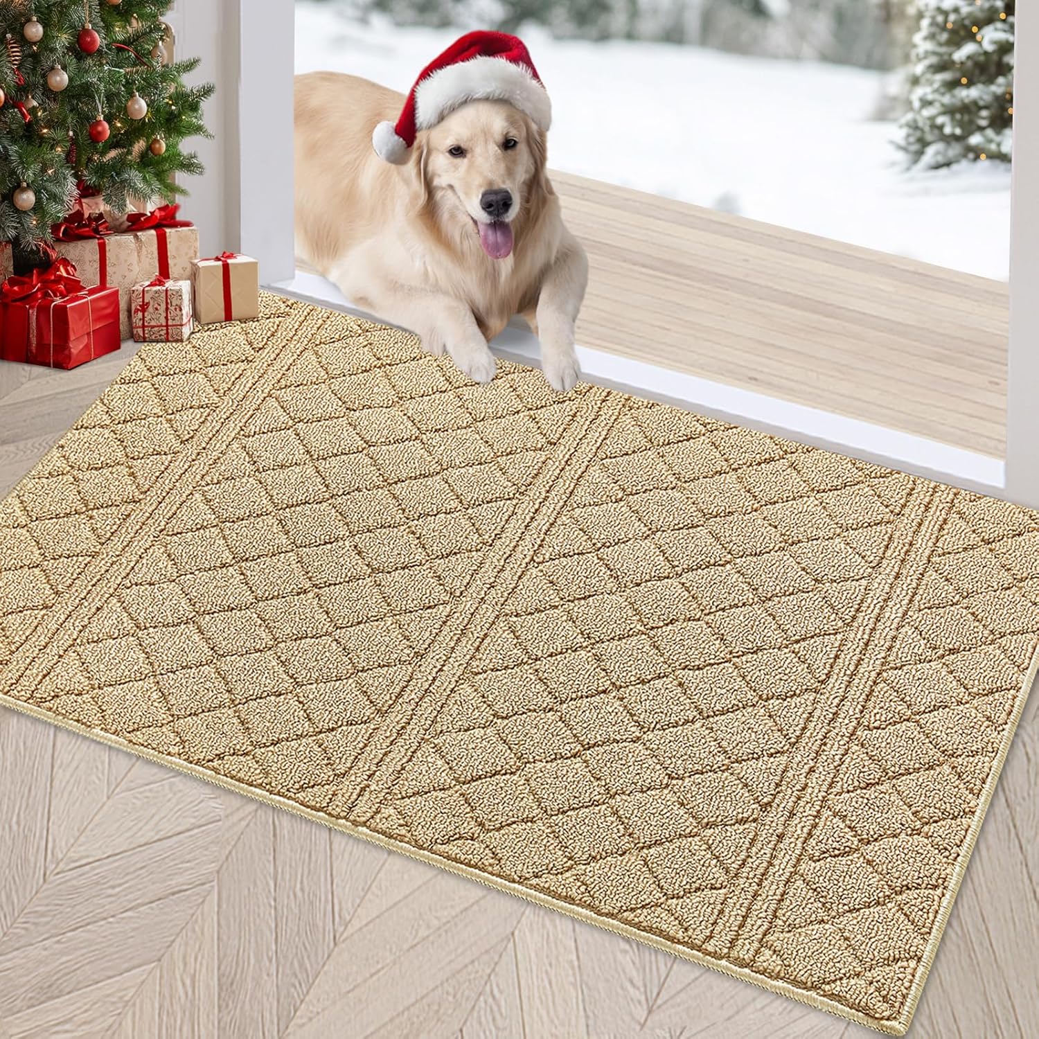 REFETONE Indoor Doormat, Front Back Door Mat 32"x40" Absorbent Rubber Backing Non Slip Door Mats, Low-Profile Resist Dirt Entrance Rugs, Machine Washable Door Rug Inside Floor Mat for Entryway, Beige