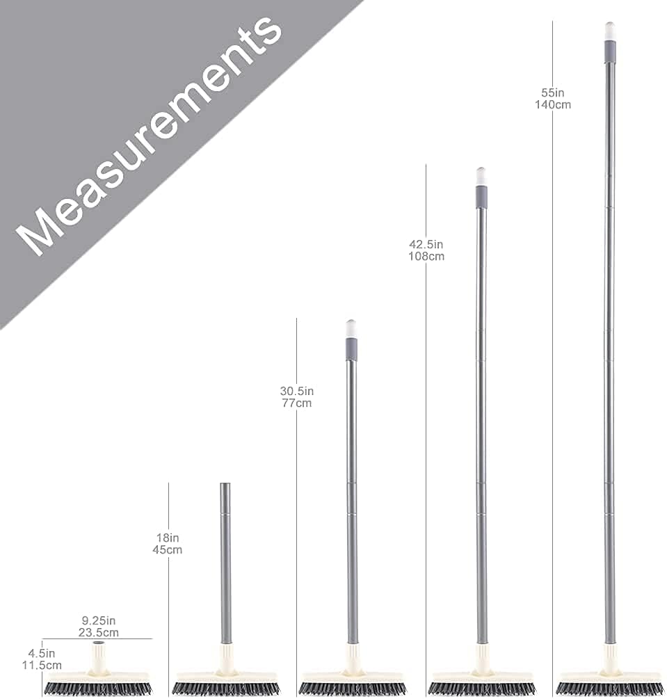 - Versatile Purpose - The adjustable long handle offers exceptional ease and flexibility in usage. The pole can extend or retract according to your needs, making it versatile for various cleaning tasks. Its sturdy design allows for effective scrubbing of floor tiles, grout lines and corners. Moreover, it's ideal for removing mud dauber tunnels from exterior brick walls and cleaning spiders from wooden porch ceilings. Its robustness also proves invaluable for eliminating weeds between pavers.