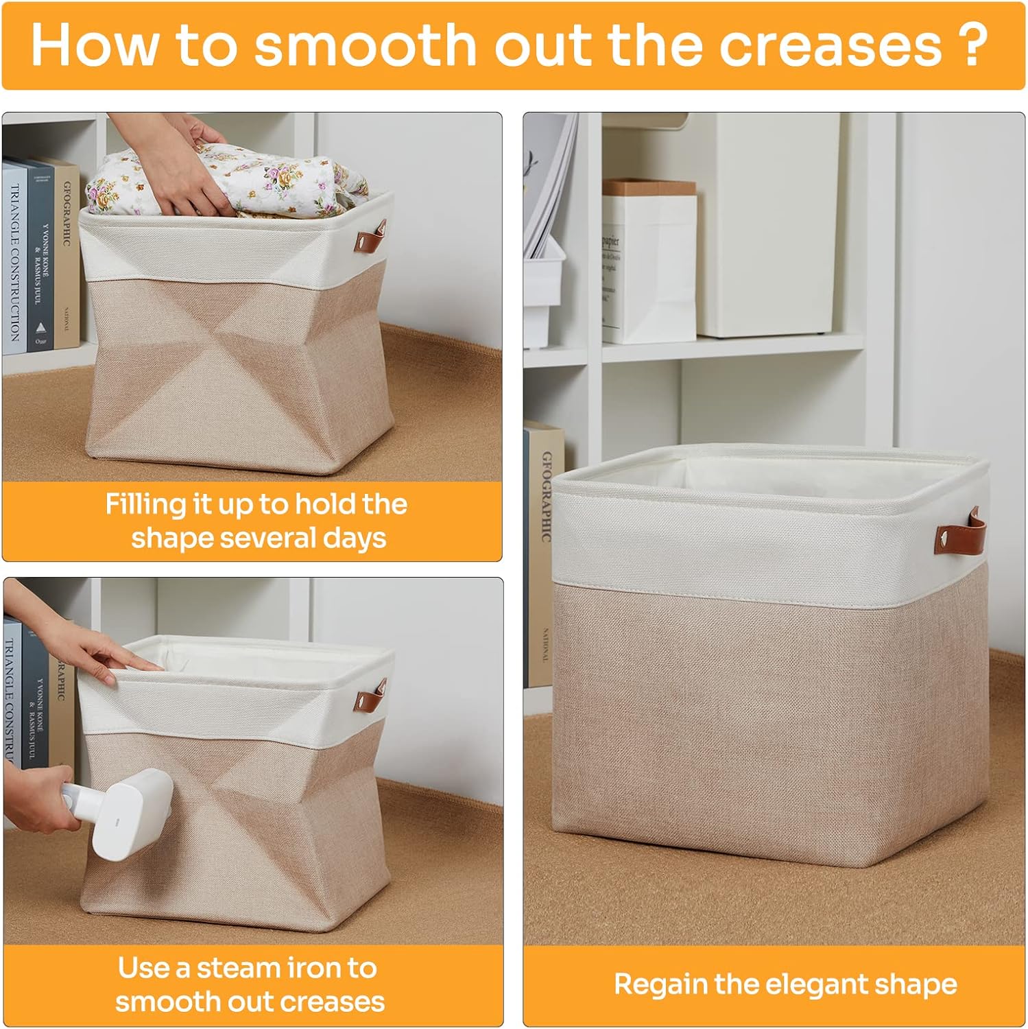 - 【Care】Please wipe away stains with a damp cloth and make it dry for daily care; DO NOT wash the fabric bins.There may be light smell when the package is opened first; please put products on a well-ventilated place for several hours.