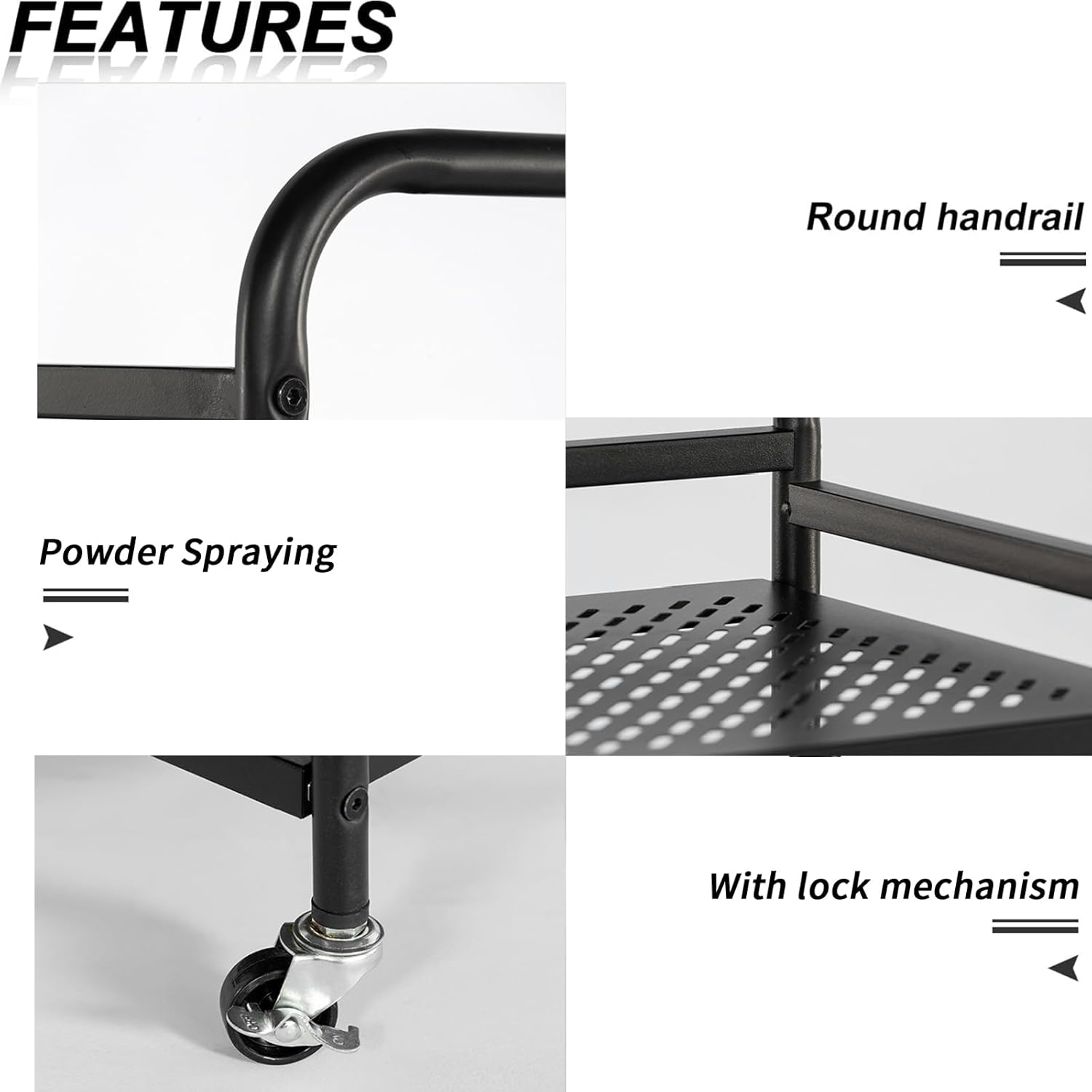 - 【High-quality Materials】This Three Tier Rolling Cart Is Made Of High-quality Carbon Steel,Which Is Strong And Durable.It Can Carry Up To 40 Pounds Per Layer And The Electrostatic Powder Coating Process Makes It Resistant To Fading Or Rusting.