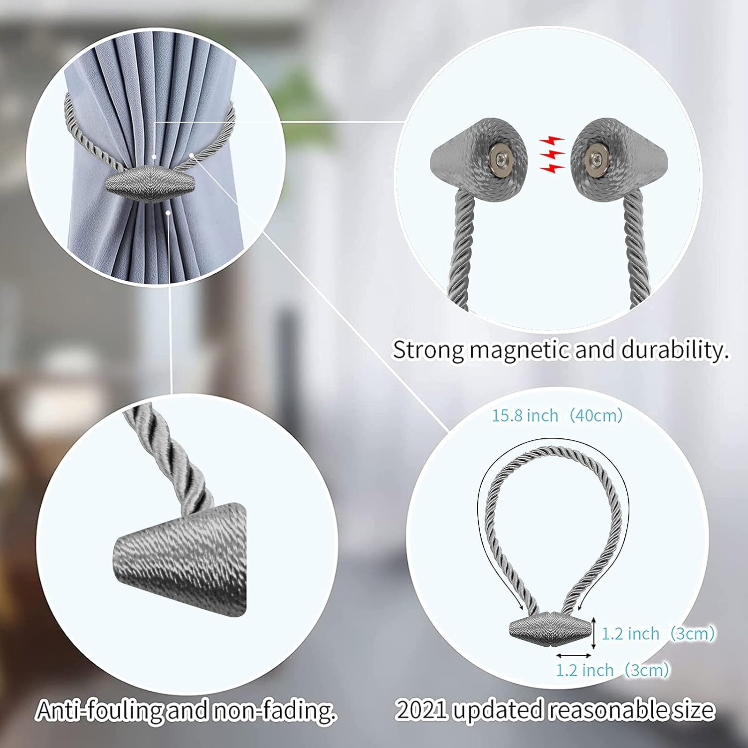 - [Upgrade Powerful Magnetic] Our magnetic curtain tiebacks magnets use high-end new imported nickel-plated magnets, with strong corrosion resistance and durability, more magnetic than ordinary magnetic curtain tiebacks, and do not rust and not lose color. The rope of curtain tie adopts upgrade thickened solid polyester yarn, which is not only durable, but also not easy to wear or pilling.