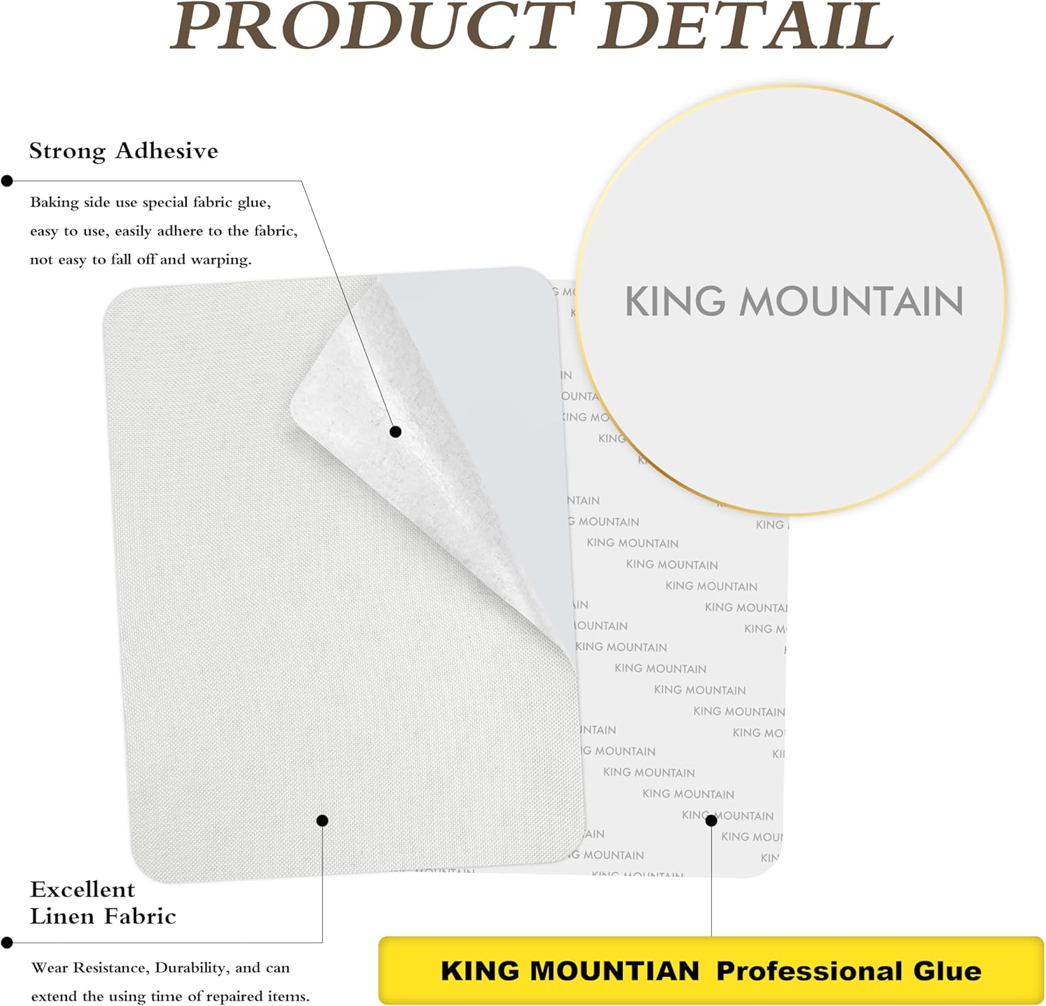 KING MOUNTAIN Fine Linen Repair Patches, Self-Adhesive Linen Fabric Patches, 8X11 inch Extra Size, Multi Color, Can be Used for Linen Sofa Repair and Linen Clothes Repair(8" x 11",White)