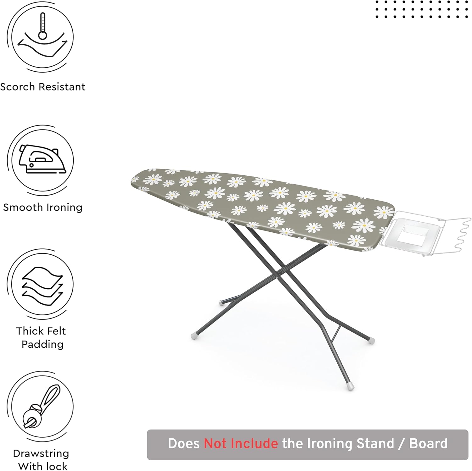 Encasa XO Ironing Board Cover and Pad 57"x22" - Thick 3mm Felt Padding, Drawstring Tightening & Lock, Easy Fit, Scorch & Stain Resistant, Fits X-Large Ironing Board - Daisy Grey