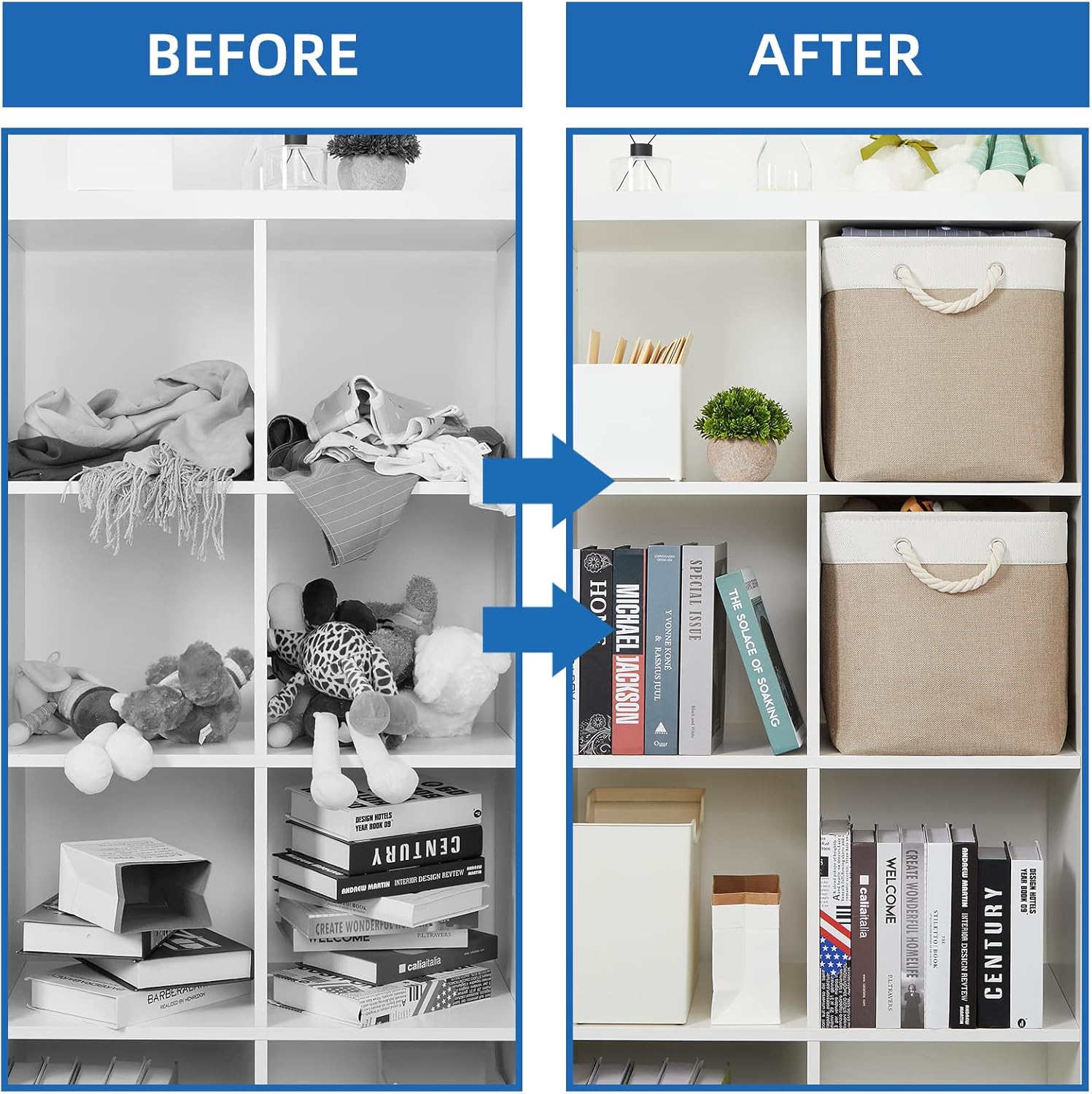 - Usage Tips: The organizer basket set comes with compression packing which may result in wrinkled in long-distance transit. DON'T Worry! Iron the wrinkles out with a steam iron or Fill the basket with stuff