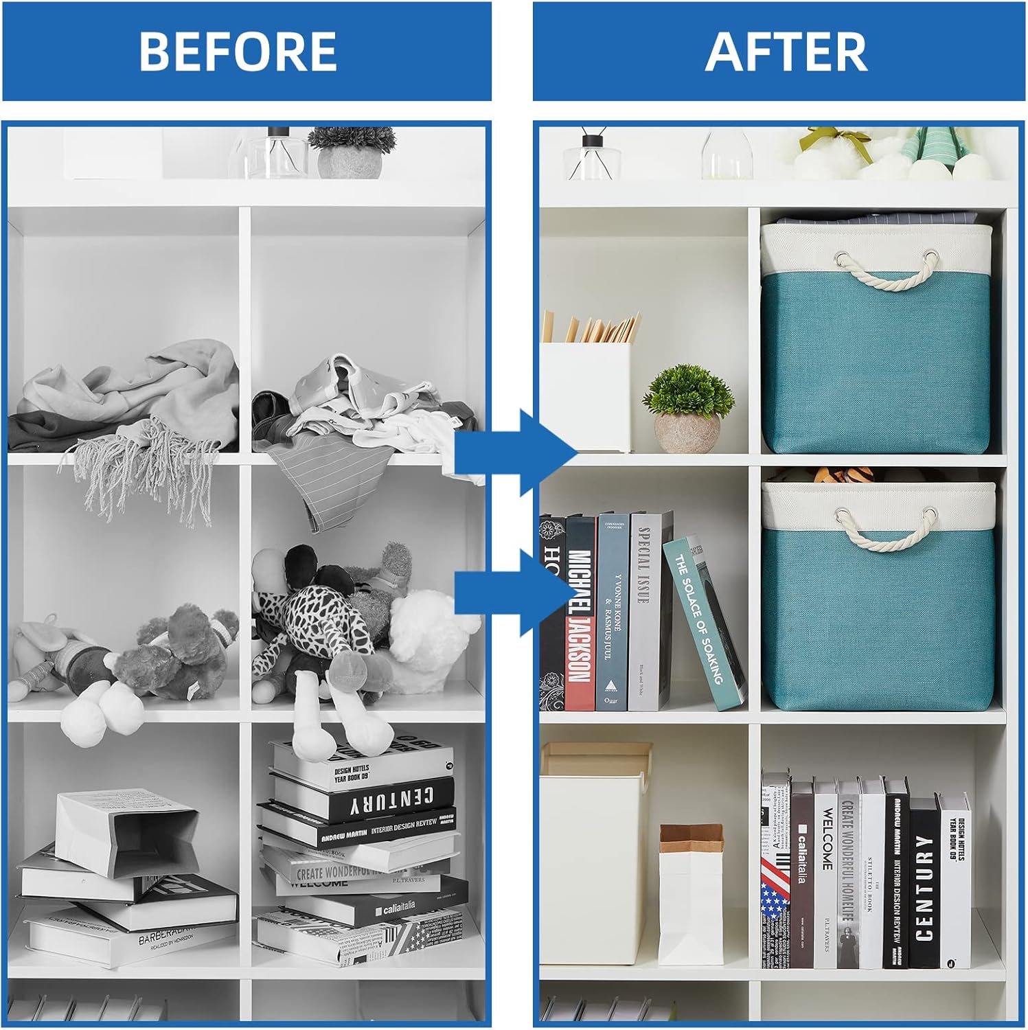 - EASY to CARRY: The cloth storage basket comes with 2 sturdy rope handles for easy access and for portability. Soft handles that add a classic touch, and make these closet baskets are sturdy and easy to grab and make it easy to carry or pull off and out of shelves