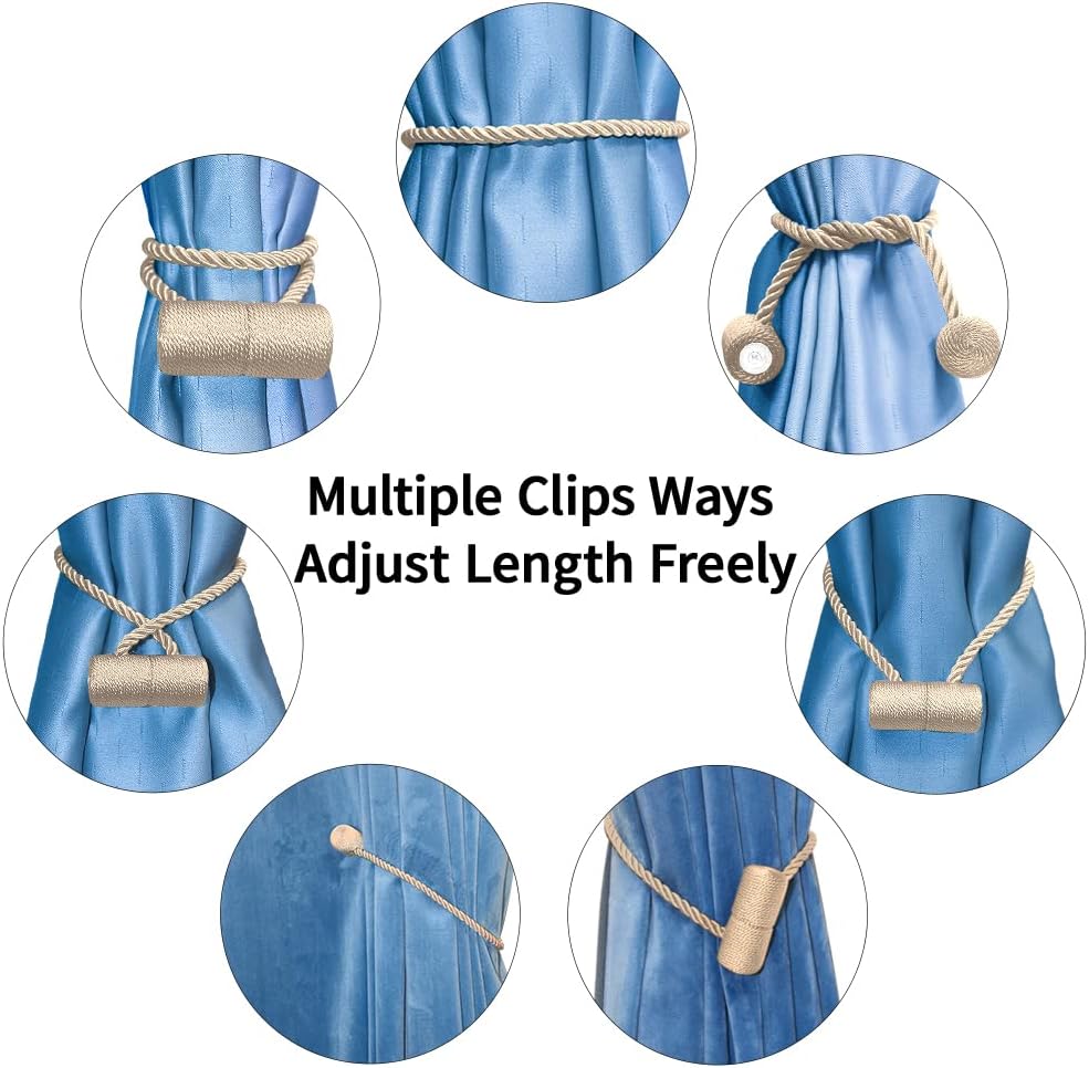 - NO DRILLING & INSTALLATION:The magnetic rope tie backs with modern upgraded stronge/durable magnets,hand-tiwsted woven texture apperance rope, heavy-duty polyester rope. No need any tools,no drilling your wall, so magnetic curtain tiebacks for drapes will not damage the wall easy to operate,hold your curtain in seconds. It is a perfect substitute for wall-mounted hooks and could be tied on anywhere, and you don’t need to worry about the extra curtain hooks hurting the child