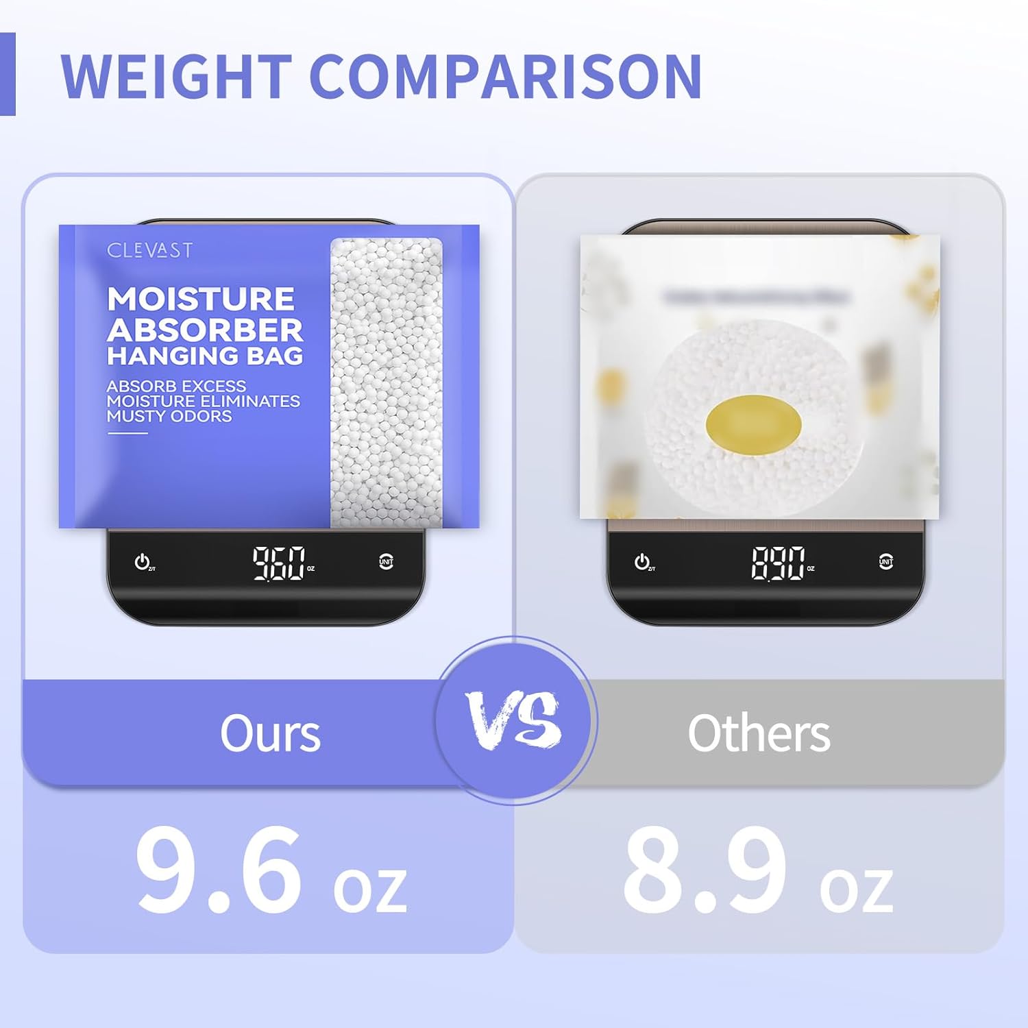 - VISIBLE DEHUMIDIFYING PROCESS: The CLEVAST absorber bags capture excess moisture in the air and trap it to a large 500ml water storage. The accumulated water through the dehumidification effect can be observed anytime. Dehumidifier bags can be used for up to 60 days (NOTE: If the environmental humidity is low, it will not exceed the 500ml water level. Duration will vary depending on temperature and humidity).