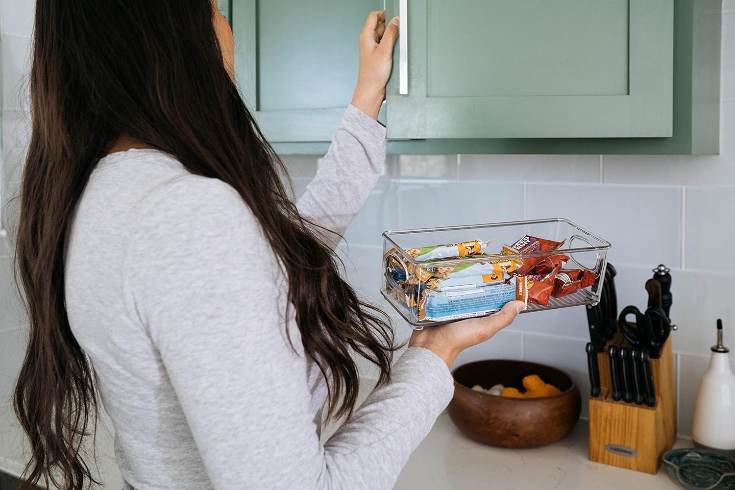 - PORTABLE & STACKABLE – Built-in, easy-grip side handles make it easy to transport from place to place. These plastic storage bins are perfect for pantry organization and storage or kitchen organization. These clear stackable storage bins are great for anywhere in your home.