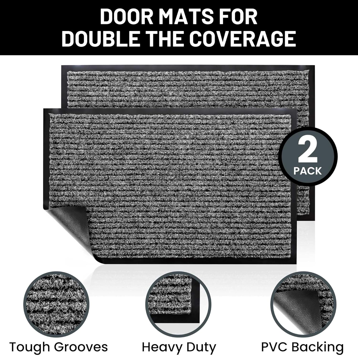 - Includes 2 Indoor Outdoor Floor Mats: Enjoy two amazing heavy duty high quality ribbed polyester door mats (30" x 17") that will be perfect welcome for the everyday home. Amazing value 2-Pack Steel Battleship Gray Color.