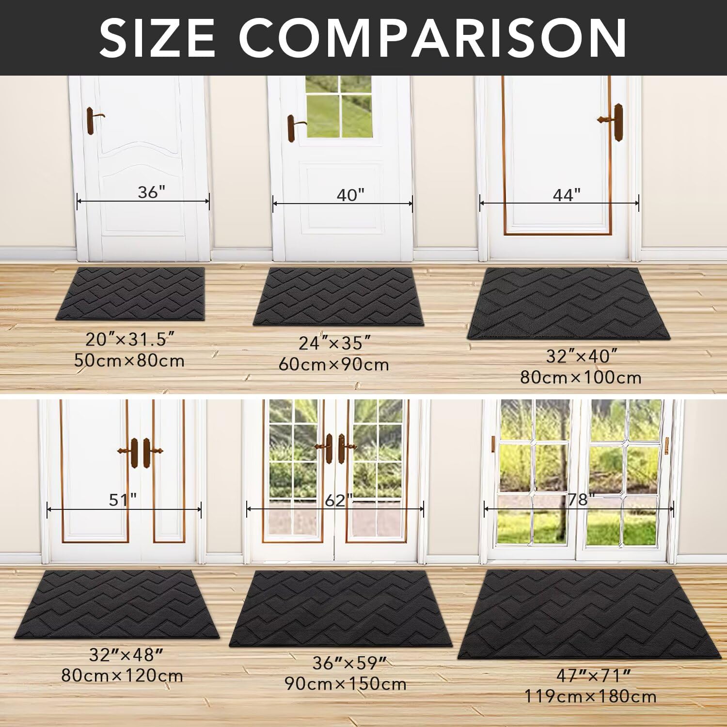 hicorfe Front Door Mat Outside Entrance,36"x59" Absorbent Muddy Dirt Resist Welcome Door Mats Outdoor Indoor,Stain and Fade Resistant,Non Slip Backing Entry Mat Doormat for Entryway(Charcoal)
