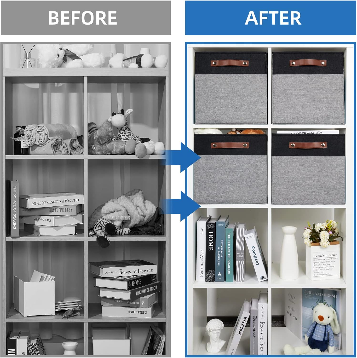 - COLLAPSIBLE STORAGE CUBES: These fabric storage bins come with a foldable feature that convenient to save space and take along. You could simply fold it up when not in use, which will take full advantage of your closet or shelf, and also save space