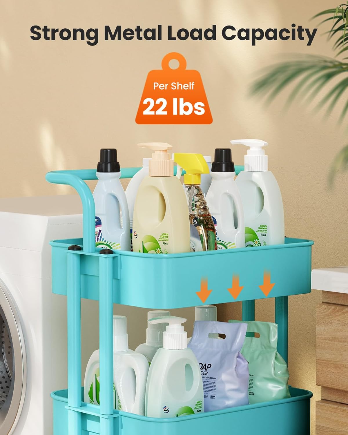 - ORGANIZE YOUR SPACE: Reduce clutter with this 3 tier rolling cart. The rolling cart features plenty of storage space to better organize your home. Turn a messy house into a tidy house with this convenient rolling cart.